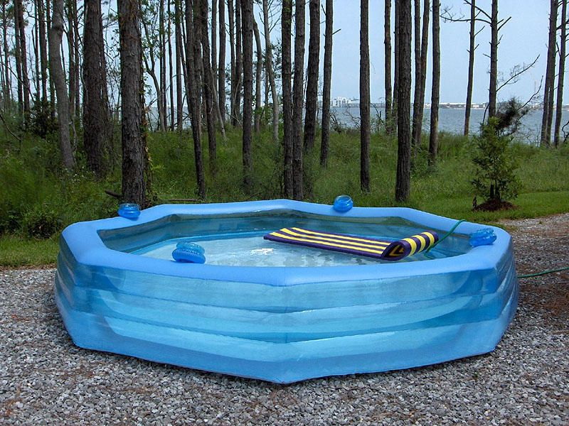 O modo mais rápido e mais fácil é fazer uma piscina, tendo adaptado para este fim qualquer recipiente pronto que já tenha um fundo e paredes. Podem ser antigos banhos de ferro fundido, recipientes de metal com tampo aberto. Elas podem ser colocadas no chão e colocadas diretamente no chão. O enchimento de piscinas deste tipo com água é realizado com a ajuda de uma mangueira e drenagem - por escavação manual ou usando uma bomba manual.