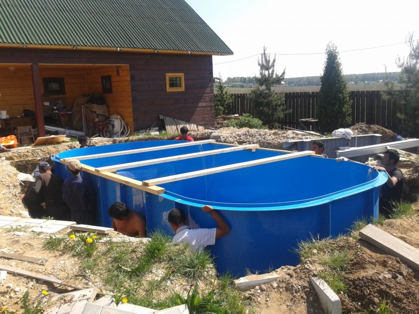Taças de piscina feitas de plástico, como estrutura independente, são utilizadas apenas em forma acabada, fabricadas em condições de produção fabril. Eles são instalados da mesma forma que o polipropileno diretamente no solo ou em um estado embutido no solo.