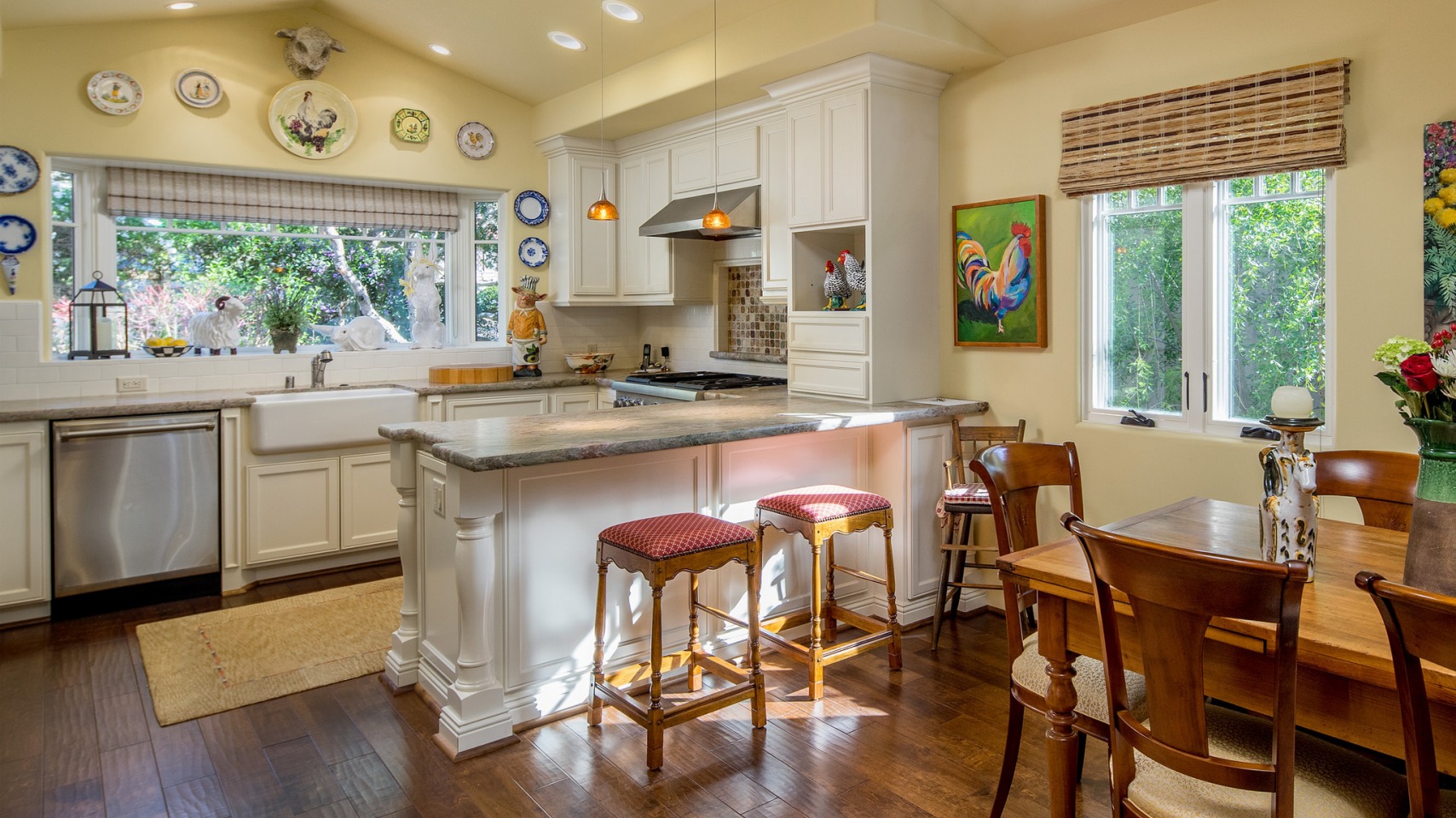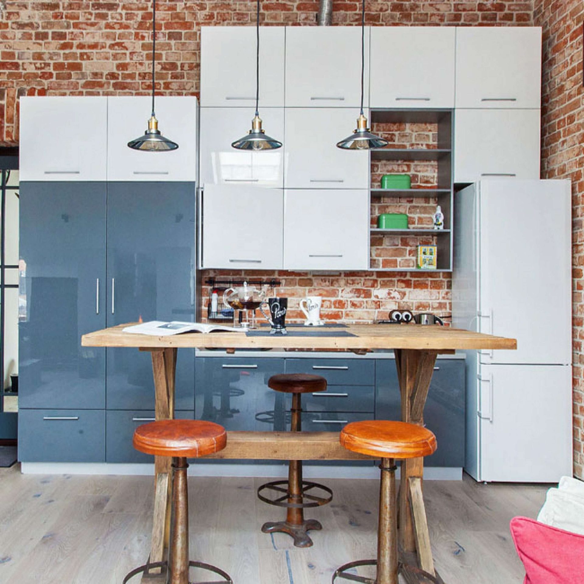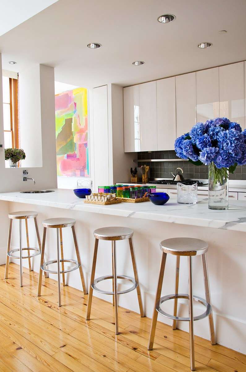 Corra tudo em uma cor, sem sombras, uma má ideia. Bem como colocar uma simples mesa de ilha na cozinha, sem pensar que existem outras soluções.