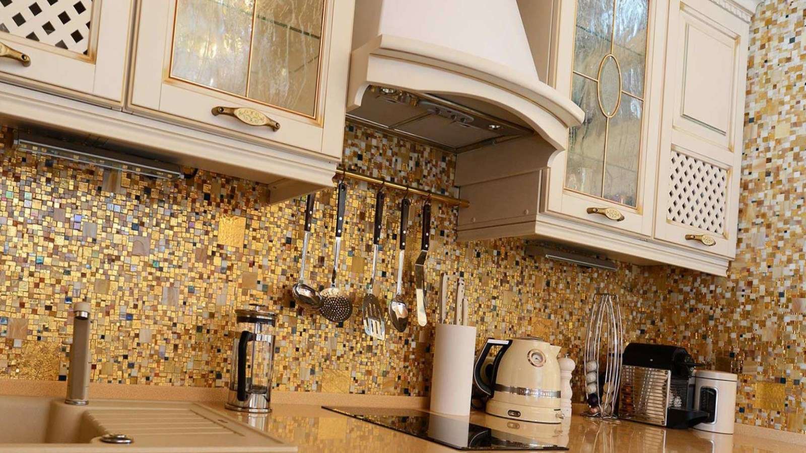 - Gesso. Ou gesso em relevo. Tem sua própria textura, geralmente fosca. Permite que você crie ondas e padrões para dar à cozinha uma aparência original. Não tem medo de água, mudanças de temperatura, mas não é adequado para todos os estilos.
