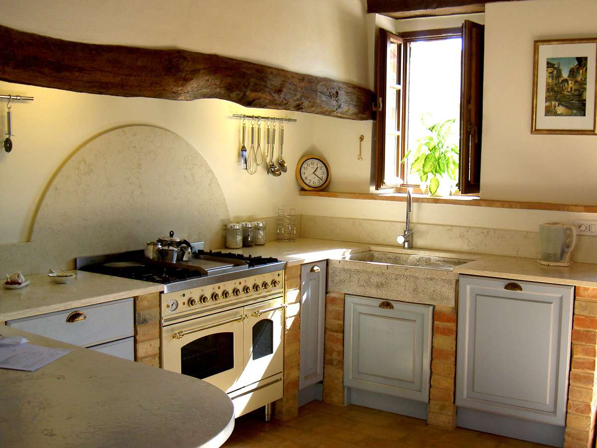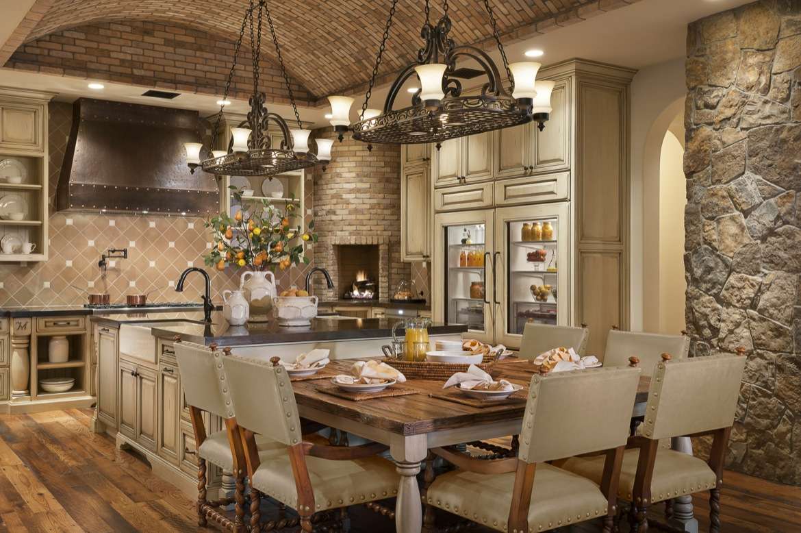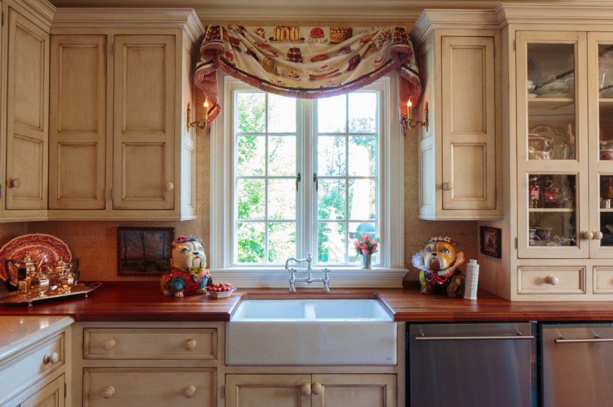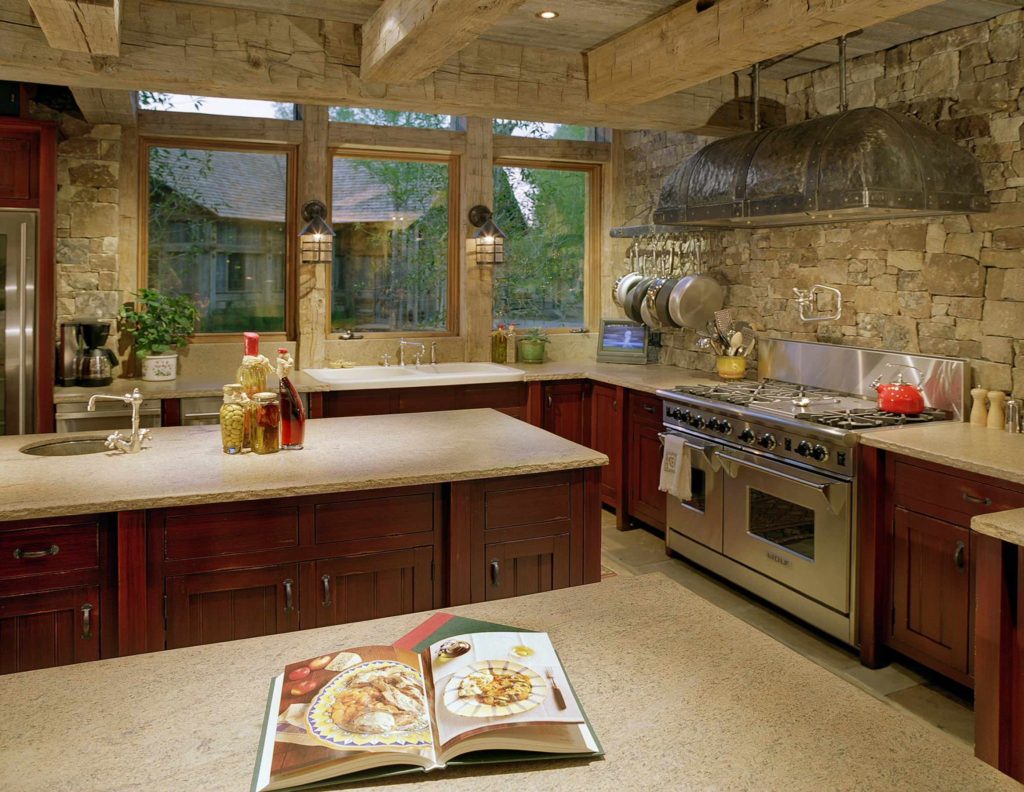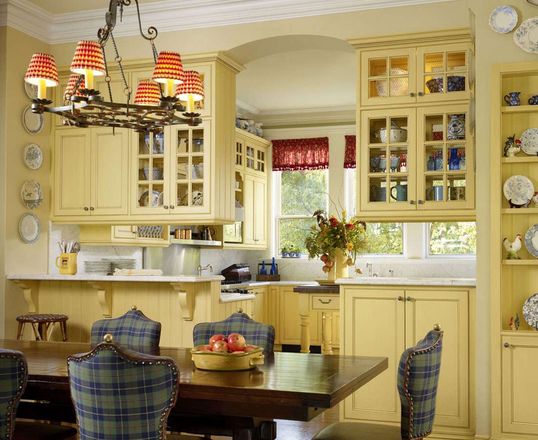 - Inglês. Claro, é mais adequado para uma casa grande do que para uma cozinha, mesmo que seja espaçosa, mas ainda pode parecer boa. No chão piso laminado ou linóleo sob ele, que cobrem com um tapete. Na parede papel de parede ou painéis de madeira. Na imitação do fogão lareira. Vigas, móveis de madeira ou estofados, como utensílios - utensílios de cozinha envelhecidos. Têxteis, no mínimo. Cores - árvore com sombras, mais marrom ou vermelho escuro.