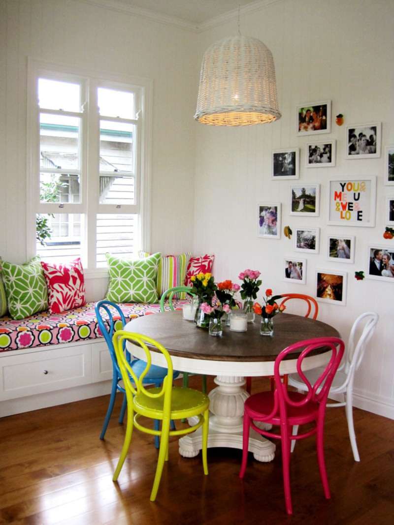 - Área de jantar. Tabela Você pode chegar até a parede mais distante, se houver uma janela, ou virar na parede lateral, virar. Outra boa solução pode ser balcão de barmas só se você gosta de sentar em cadeiras altas, e você tem um estilo moderno.