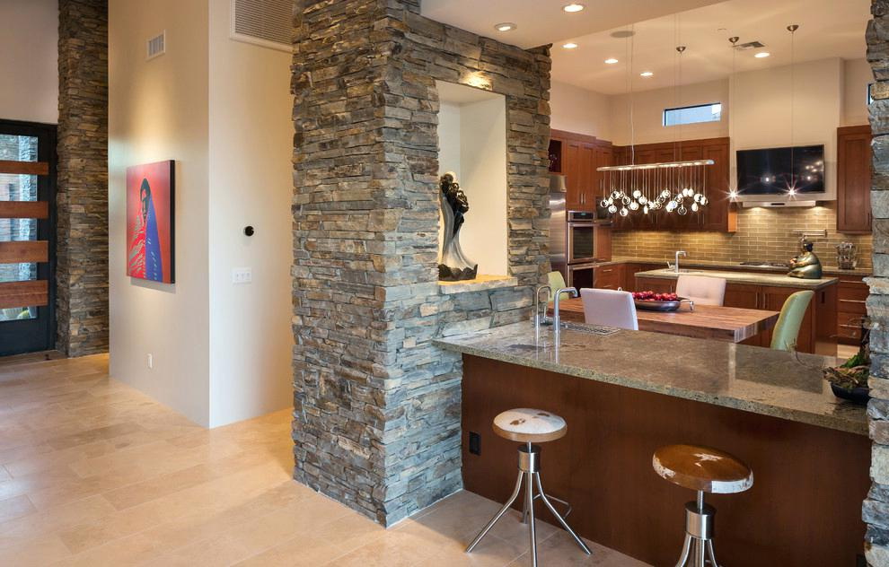 Há muito utilizado no design de interiores, a pedra decorativa é cada vez mais incluída no design da cozinha. Propriedades atraentes são: