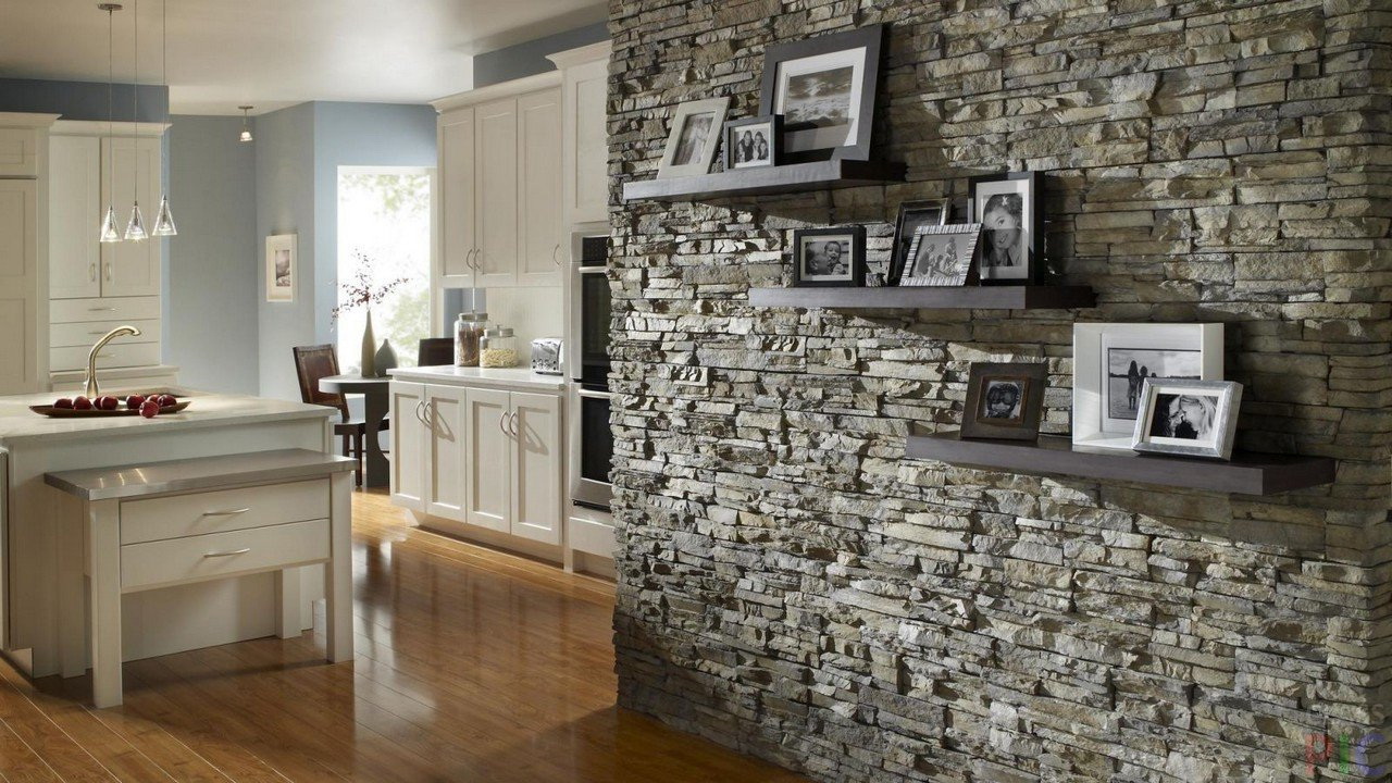 Entre as várias decorações de parede da cozinha, o mais interessante é considerado pedra e papel de parede.