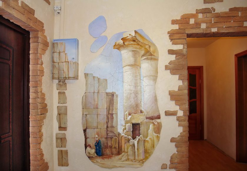 Não sendo uma novidade papéis de parede de fotossão constantemente populares. Sua popularidade é baseada em uma boa imitação de materiais naturais e um preço relativamente baixo. Vantagem indiscutível papel de parede é a possibilidade de terminar as instalações de uma pequena área e superfícies localizadas em lugares remotos.