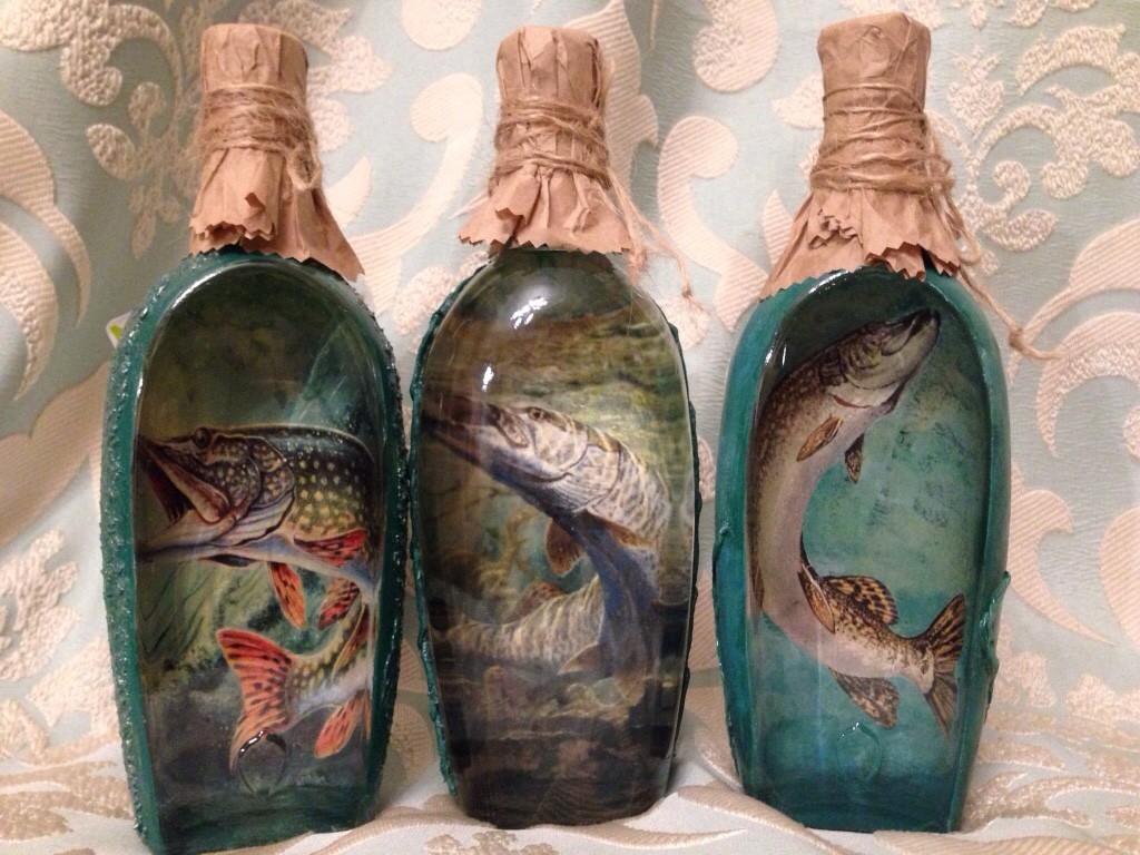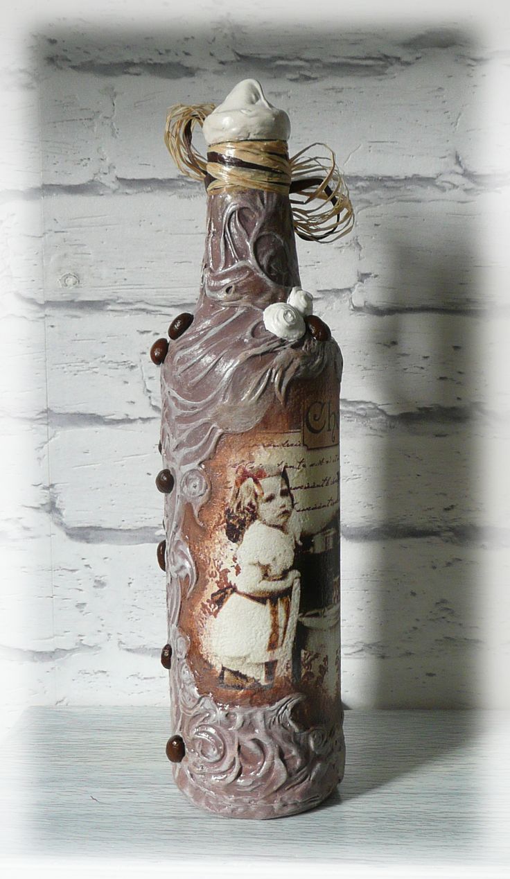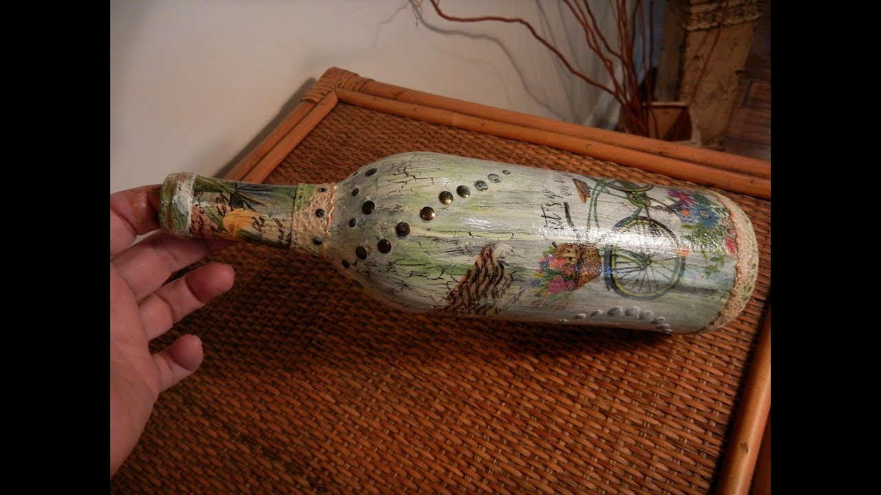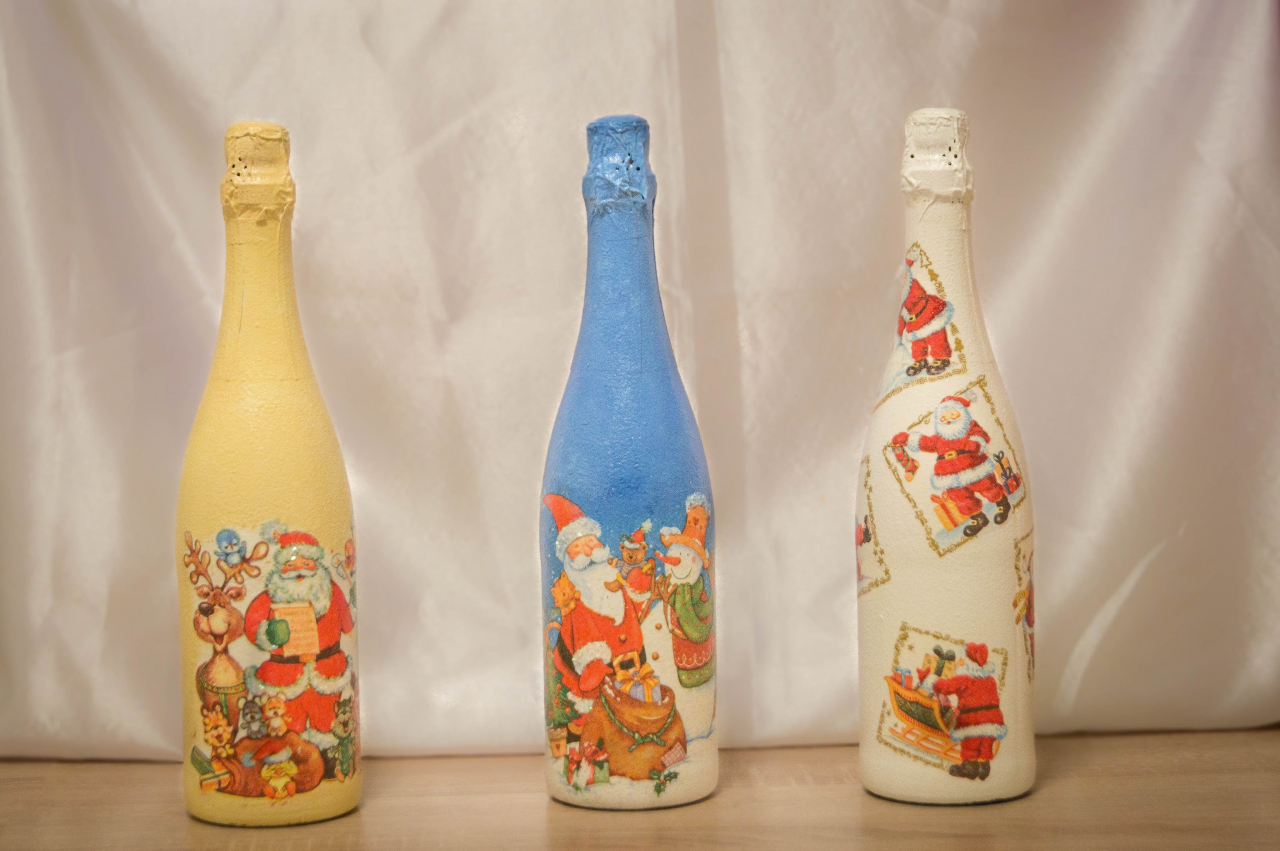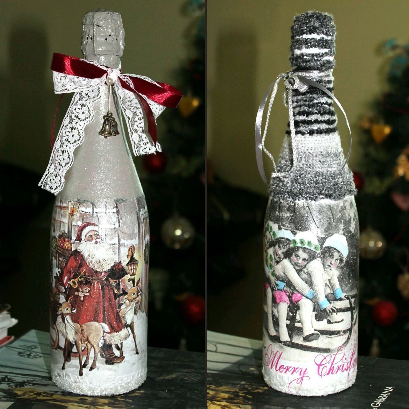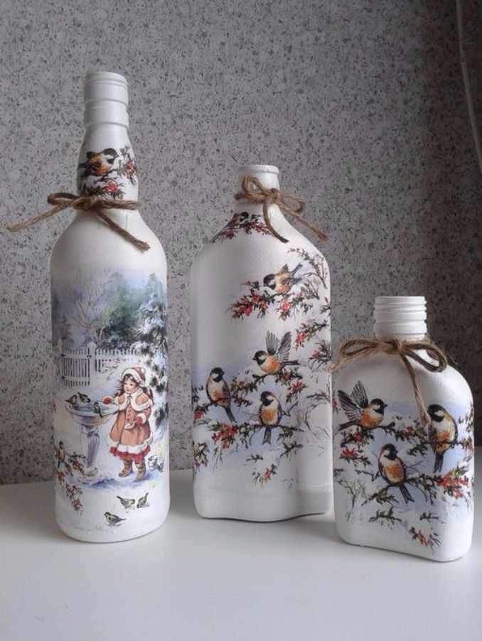 Para as artesãs que já dominaram o básico do artesanato em papel de guardanapo, quero oferecer algo novo e original. Uma idéia na moda é colocar uma garrafa festiva com um pano, criar contornos volumétricos ou fazer a imagem antiga com a ajuda de um craquelure.