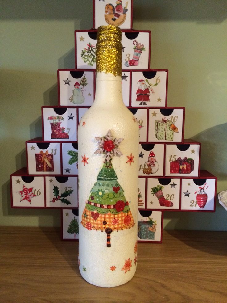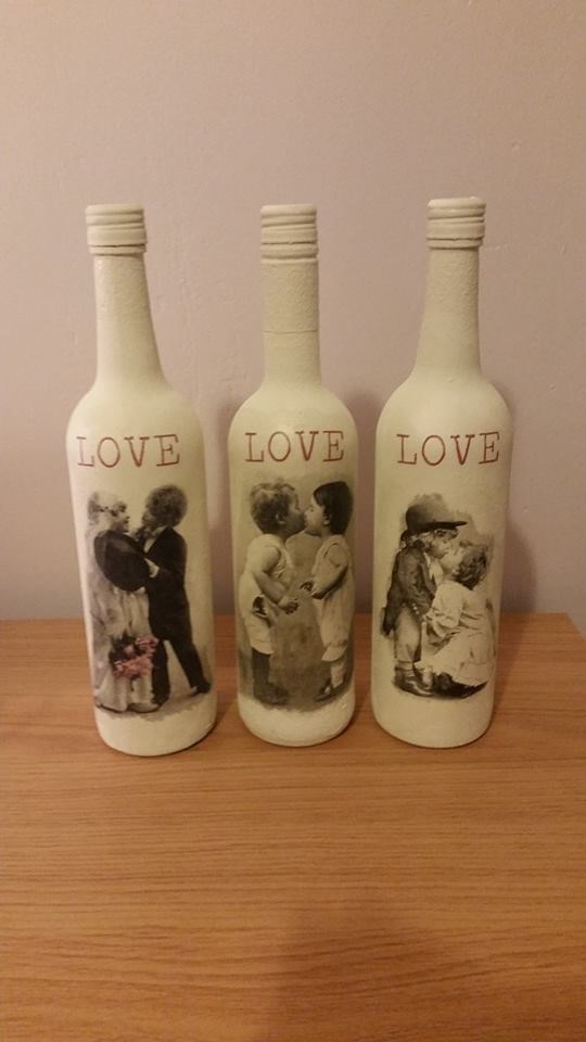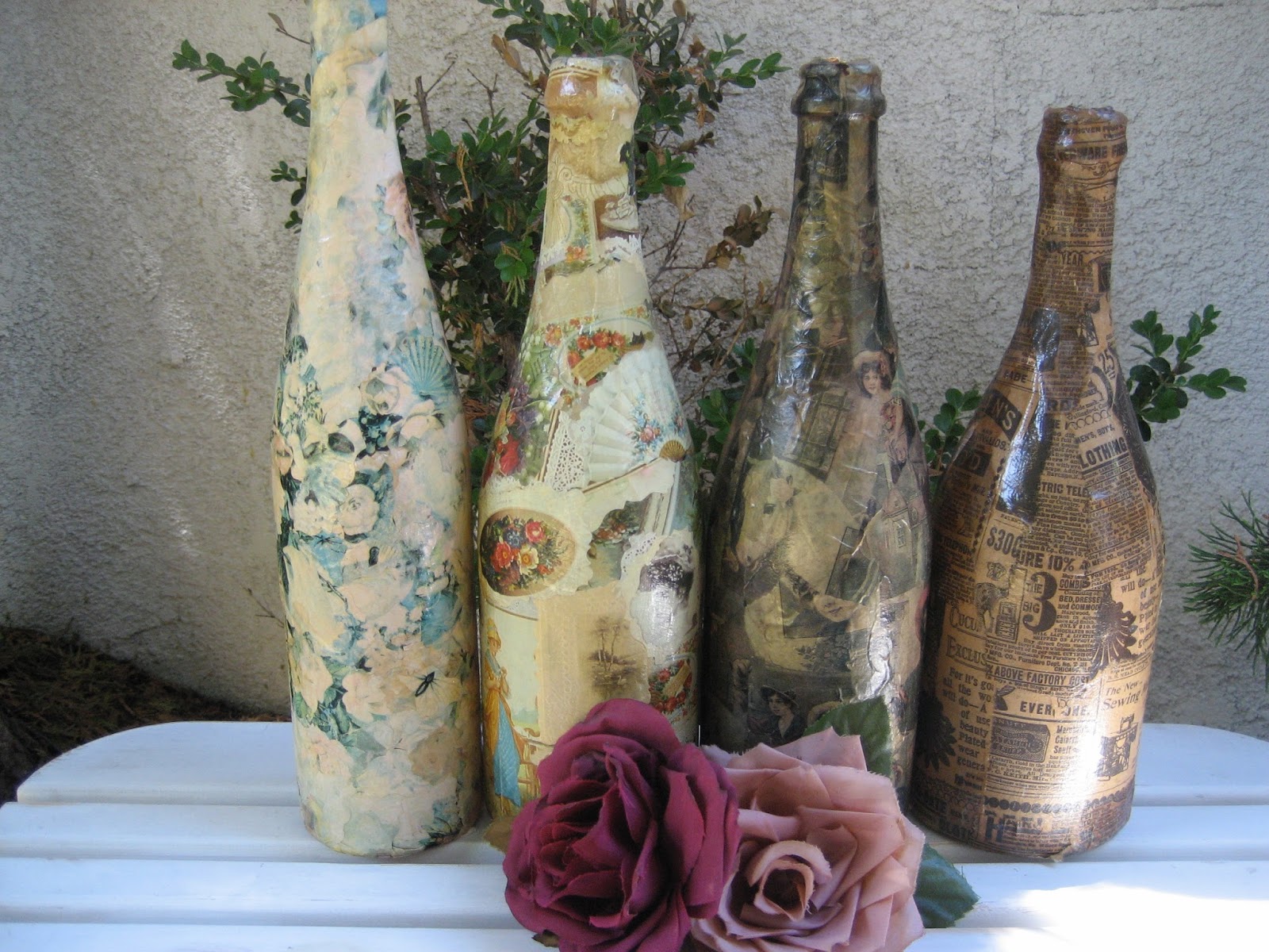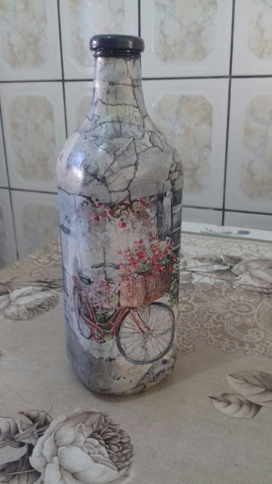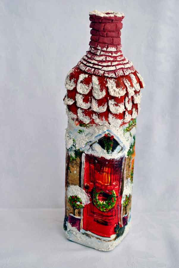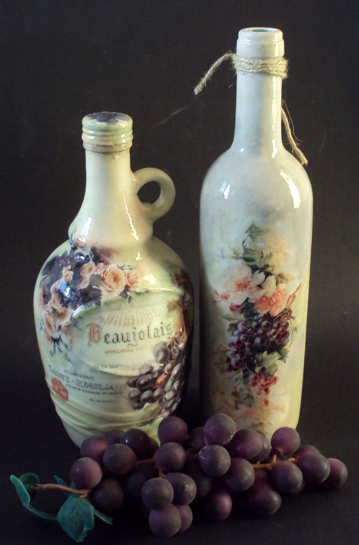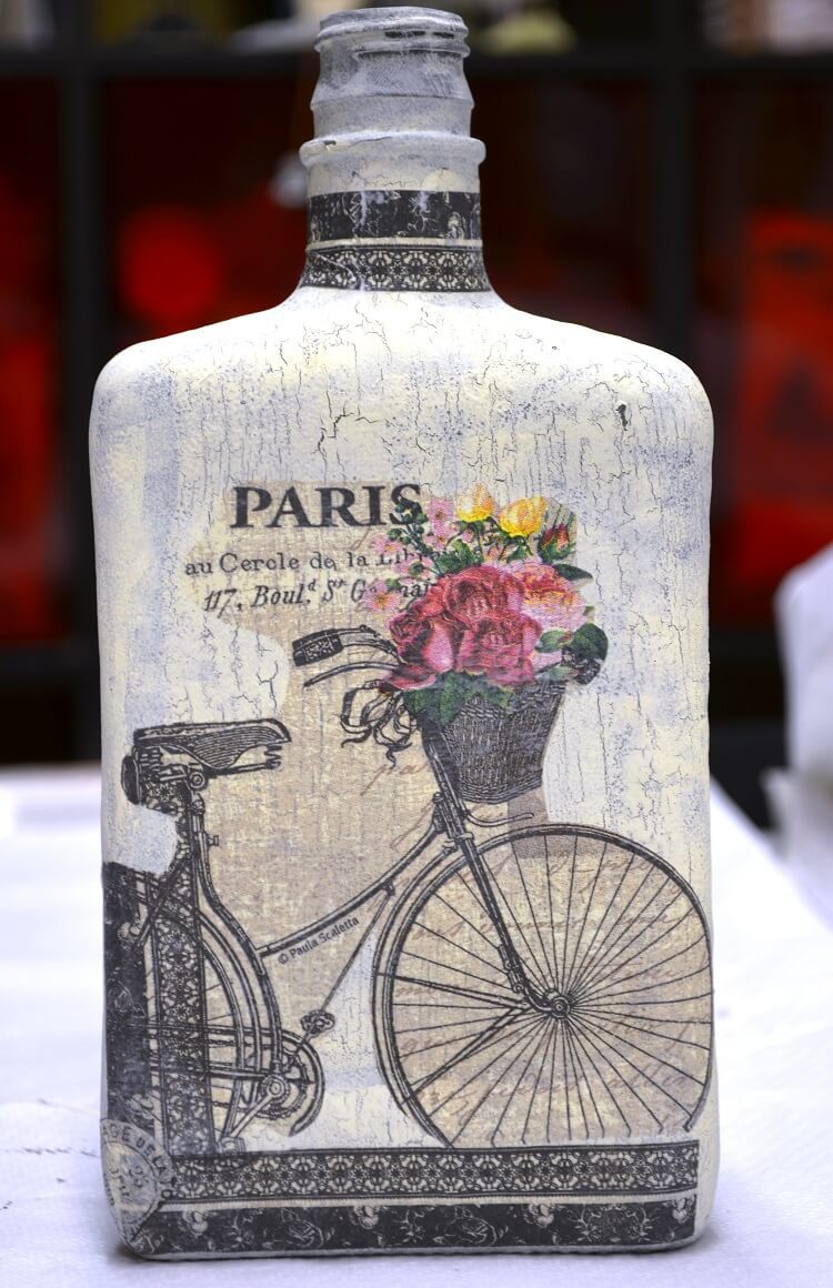 Para as artesãs que já dominaram o básico do artesanato em papel de guardanapo, quero oferecer algo novo e original. Uma idéia na moda é colocar uma garrafa festiva com um pano, criar contornos volumétricos ou fazer a imagem antiga com a ajuda de um craquelure.