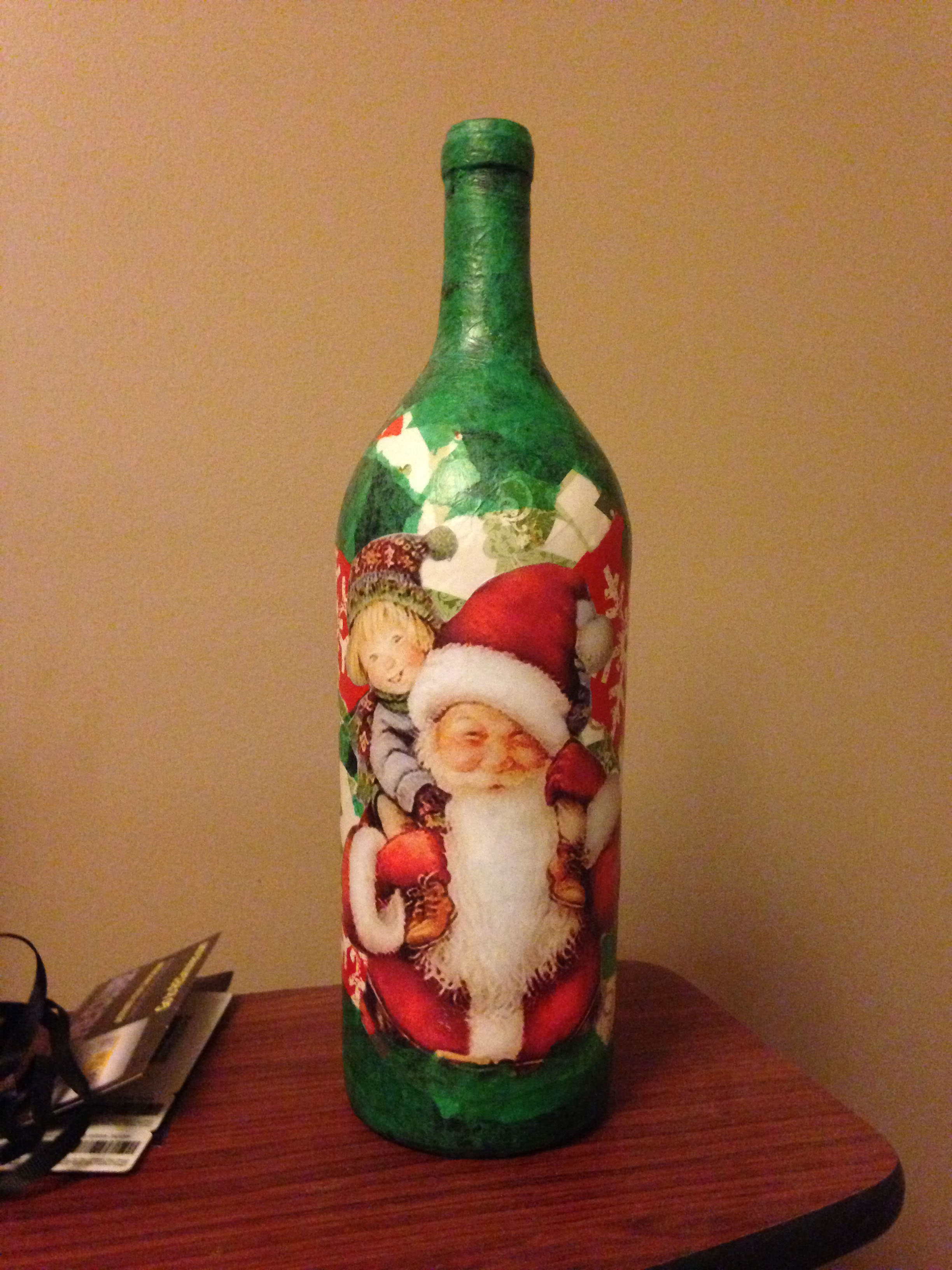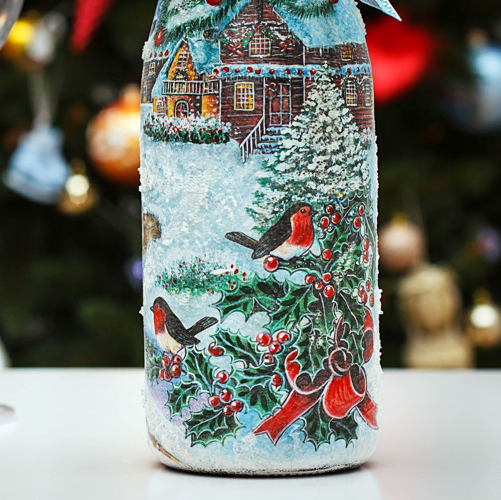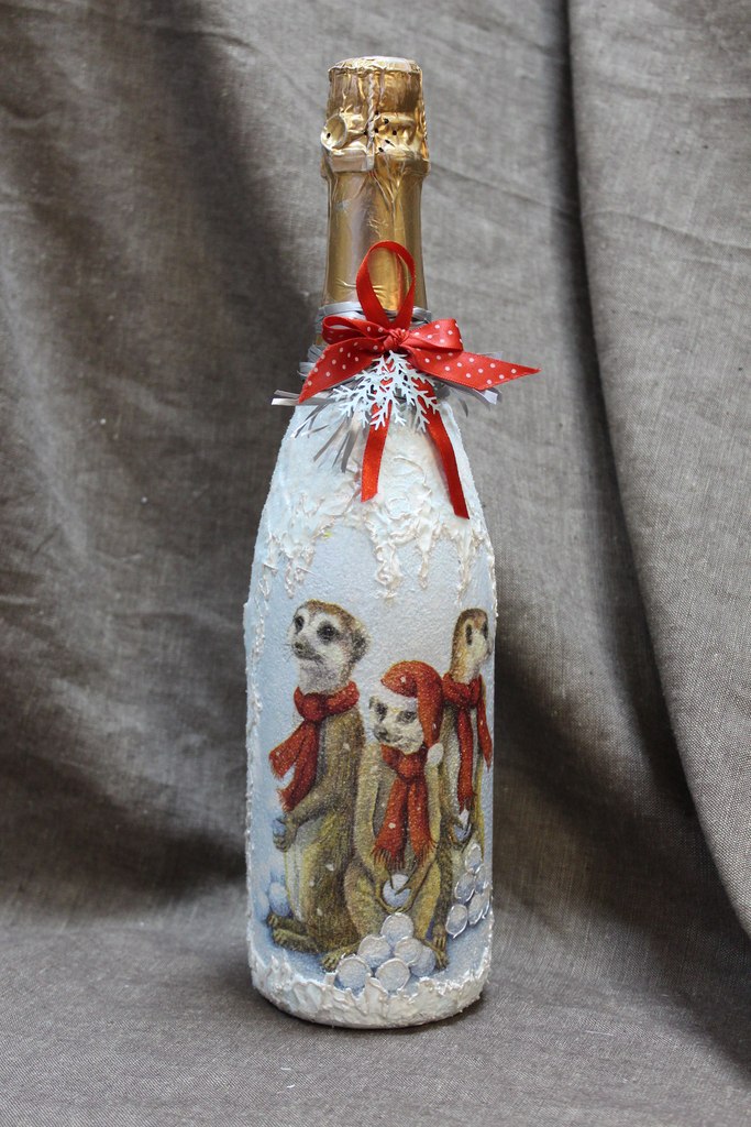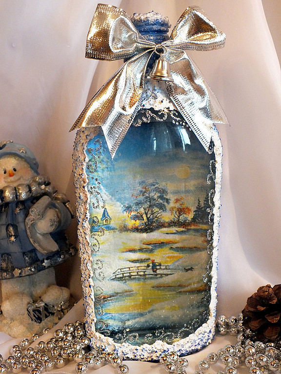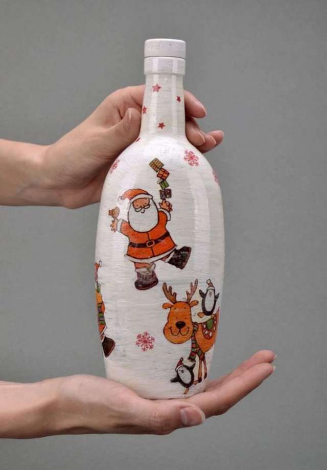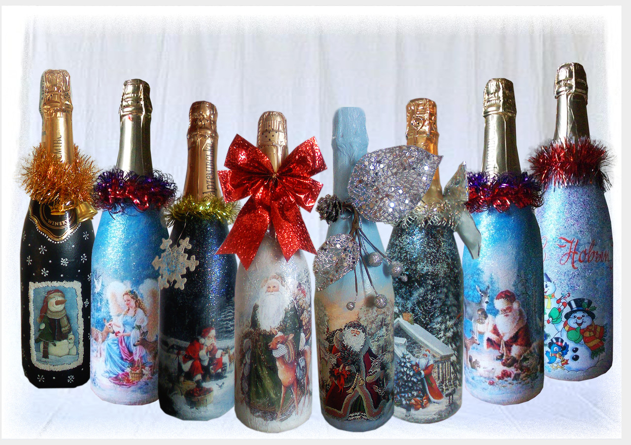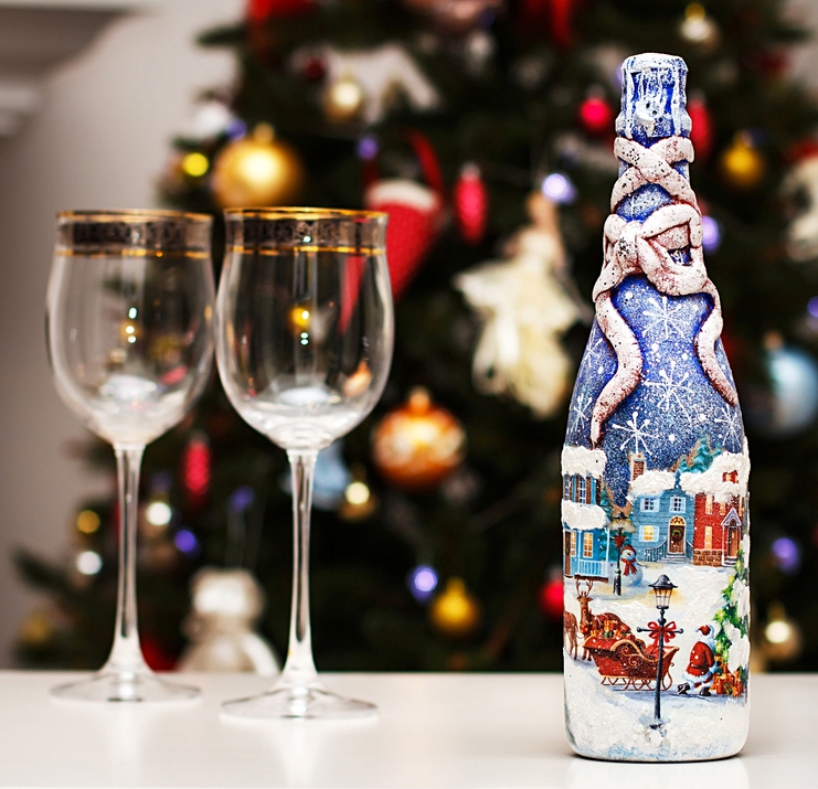 Espero que você não tenha dúvidas de que fazer uma garrafa de decoupage de Ano Novo não é uma tarefa difícil e muito interessante. Criado com amor, com as mãos de um mestre, será uma grande decoração da mesa e um centro de atenção. Decoupage interessante criatividade une adultos e crianças, pode ser seguramente chamado um hobby familiar.