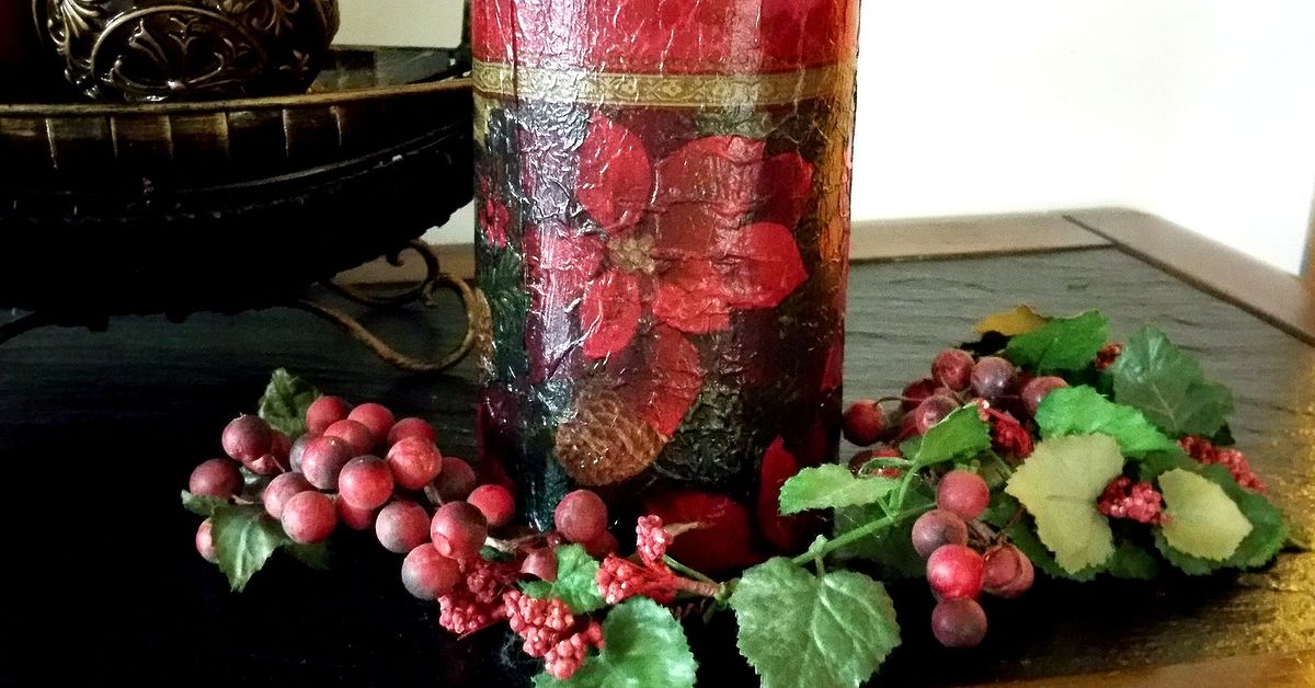 A técnica de decoupage utiliza os seguintes materiais: guardanapos, papel de arroz, recortes de jornais e revistas