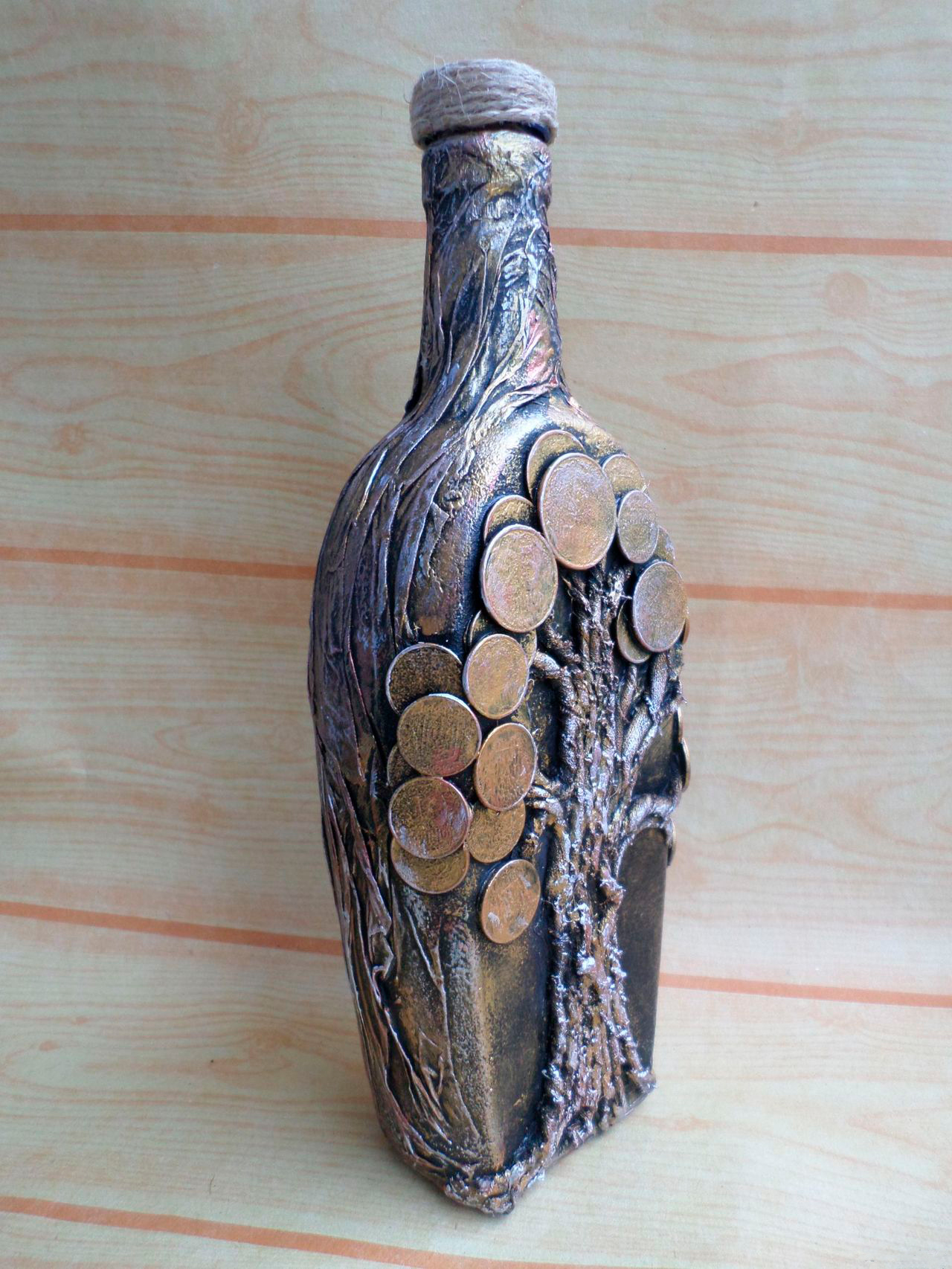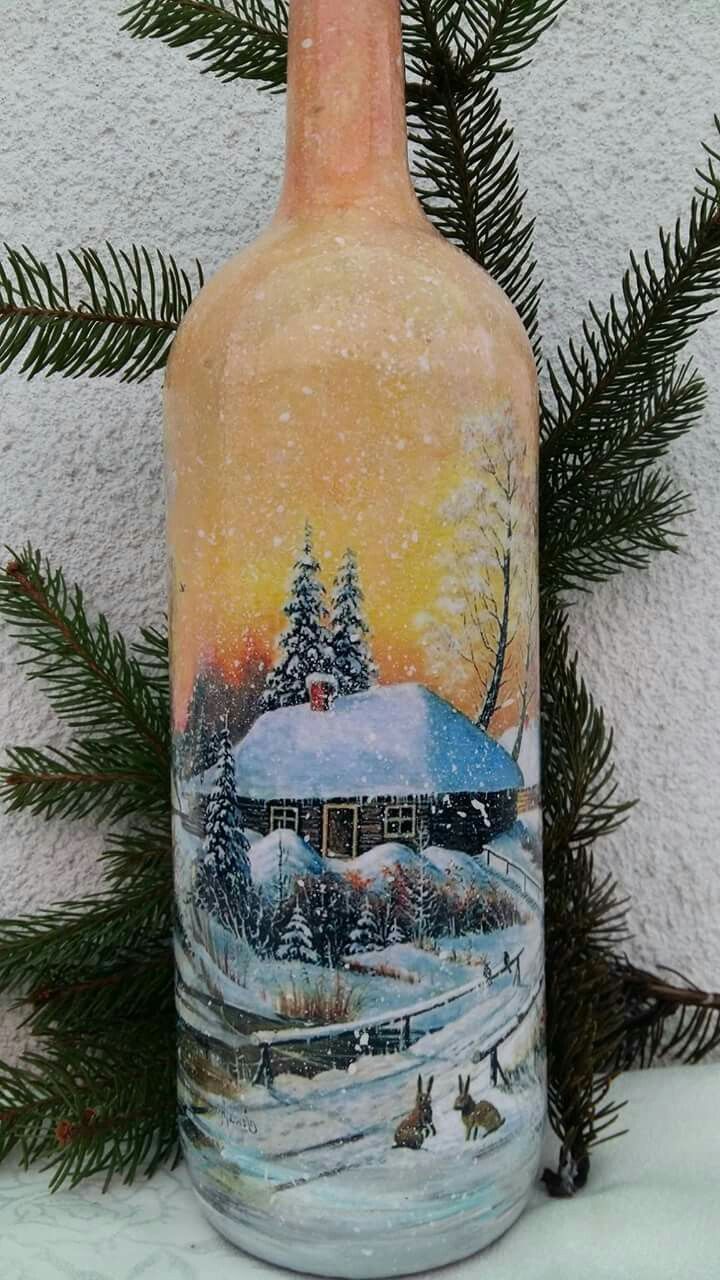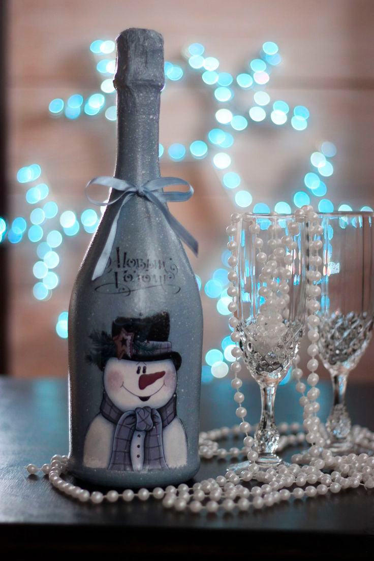 No nosso caso, o assunto do design será uma garrafa de Ano Novo. Segurando esta obra de arte (não tenho medo da palavra), é difícil acreditar que tenha sido recentemente um vidro indefinido. Um pouco de imaginação, um pouco de paciência, mais trabalho duro e uma obra de arte de Ano Novo em suas mãos.