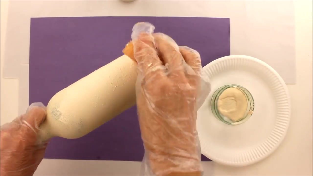 Estou preparando uma garrafa para o trabalho. Eu coloquei em água morna para descascar etiquetas de fábrica. Retiro os restos de papel com uma faca, limpe o vidro e desengordure com acetona. E agora a diversão começa.