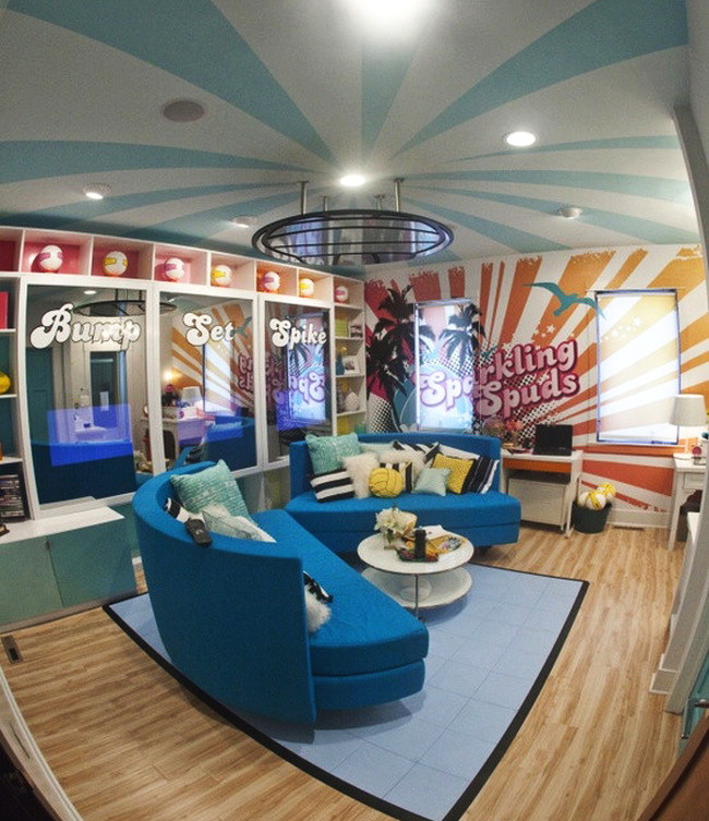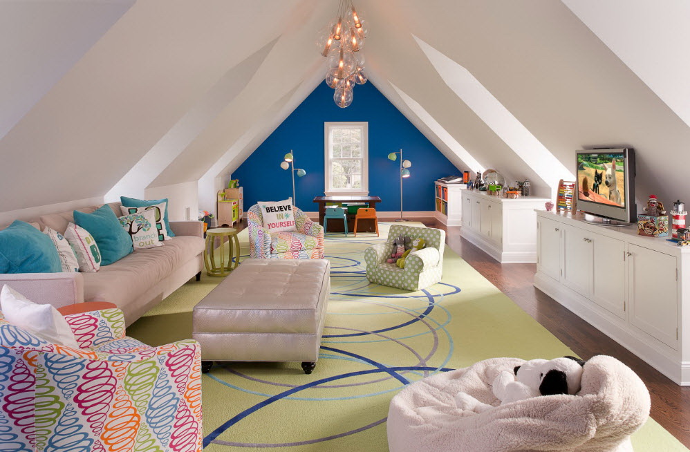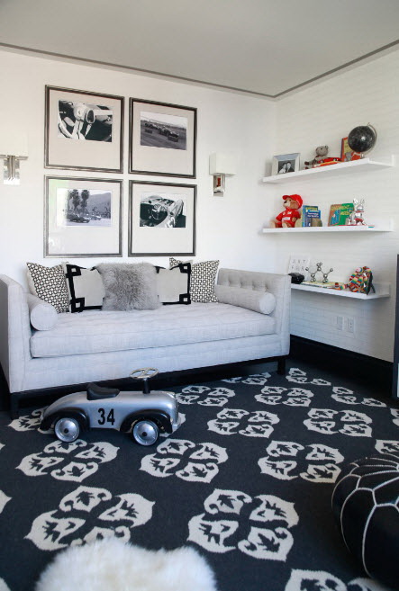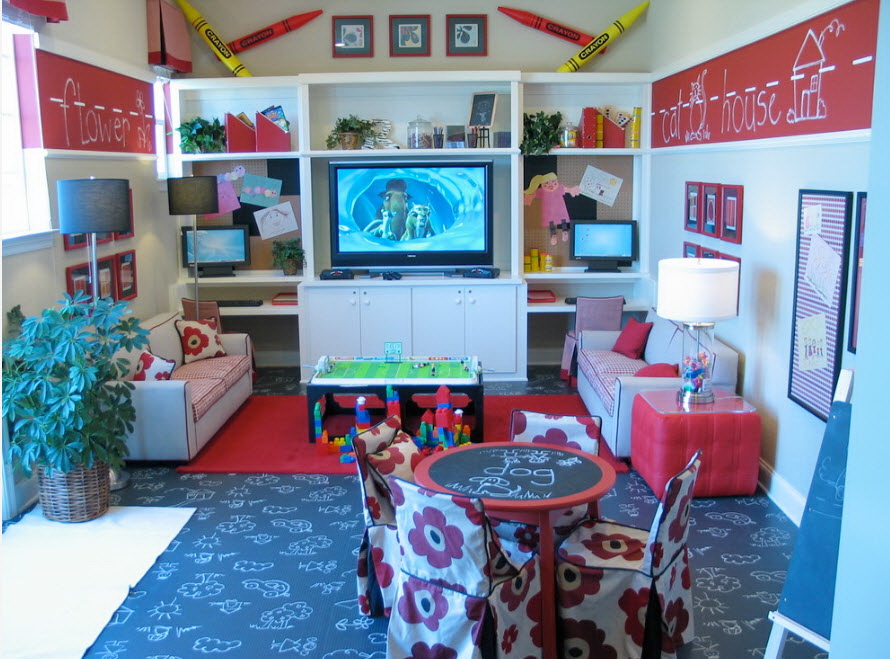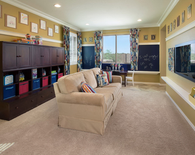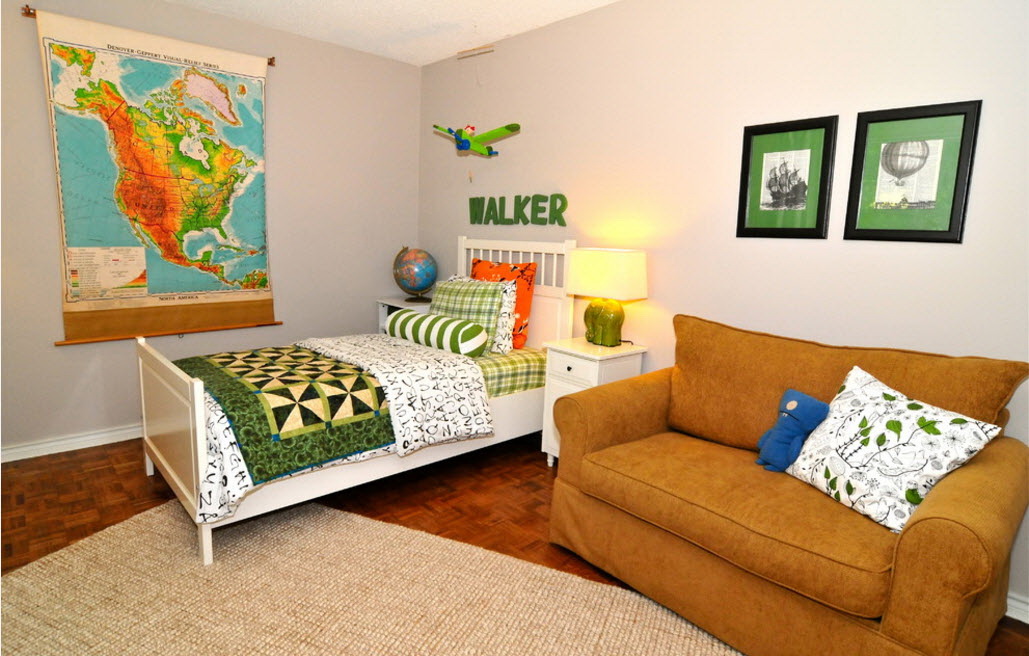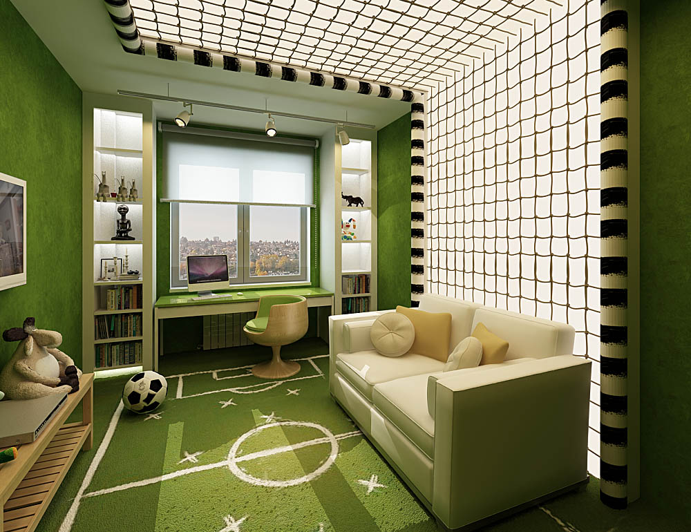 - Sofá estampado. A opção é sempre relevante - e sua principal vantagem é que quando a criança cresce, será possível simplesmente mudar o estofamento para um mais relaxado e adulto. Nesse meio tempo, um sofá com Pokémon, oi monstro e outros personagens populares se encaixam no interior do quarto das crianças. O principal é primeiro certificar-se de que a criança os ama especificamente.