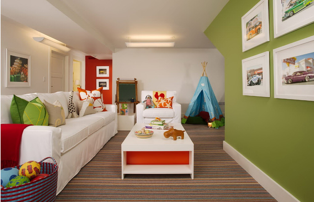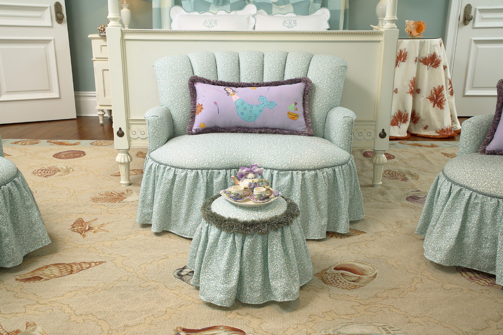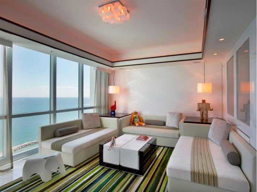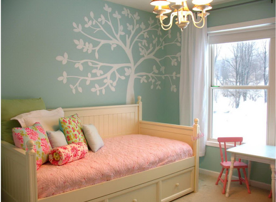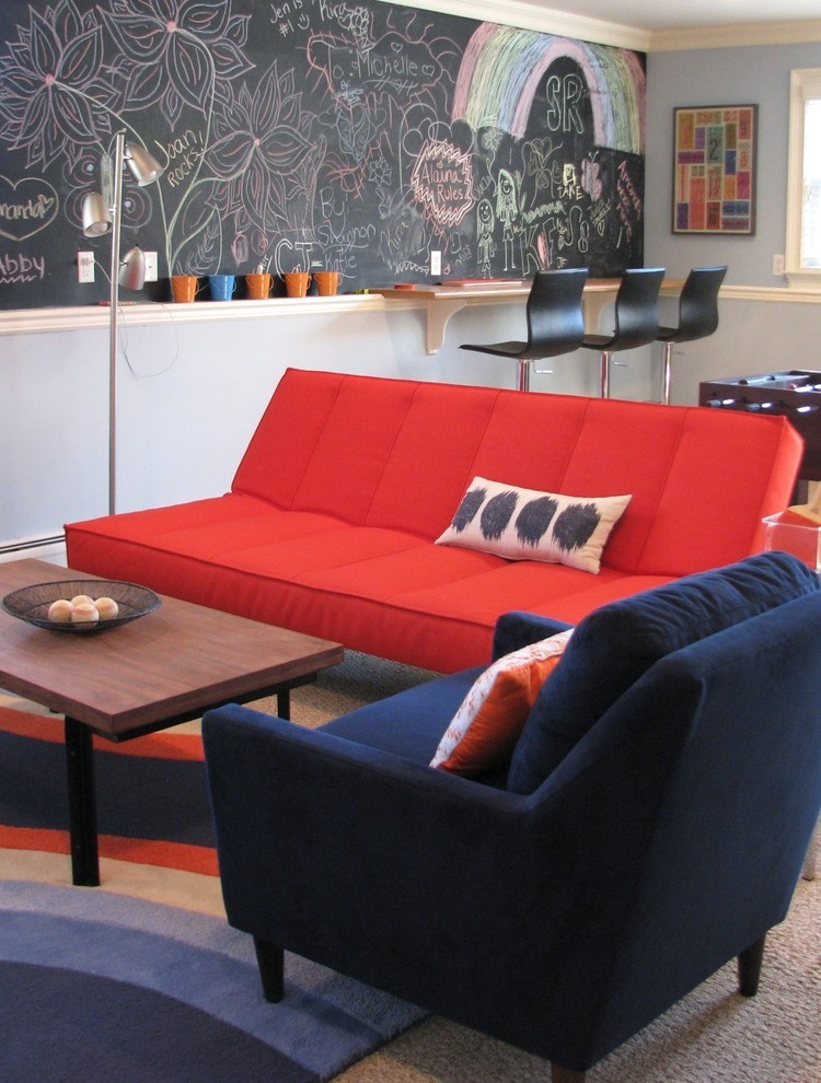 - Sofá liso. As cores brilhantes que encantam pré-escolares não são mais relevantes. Claro, sofá estofado cinzento ou marrom - ainda é uma má idéia, mas você pode preferir cores pastel, tons delicados verde e azul. Dependendo de qual combinação ficará bem com o resto da sala.