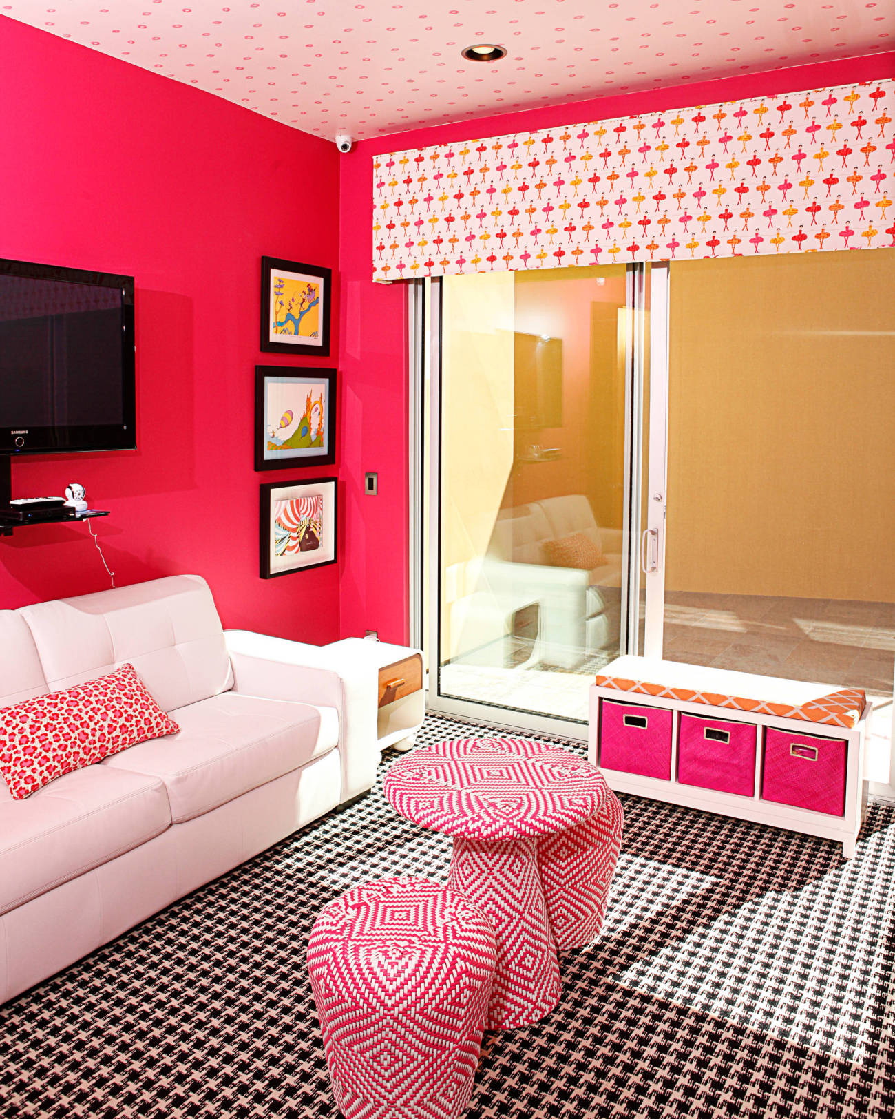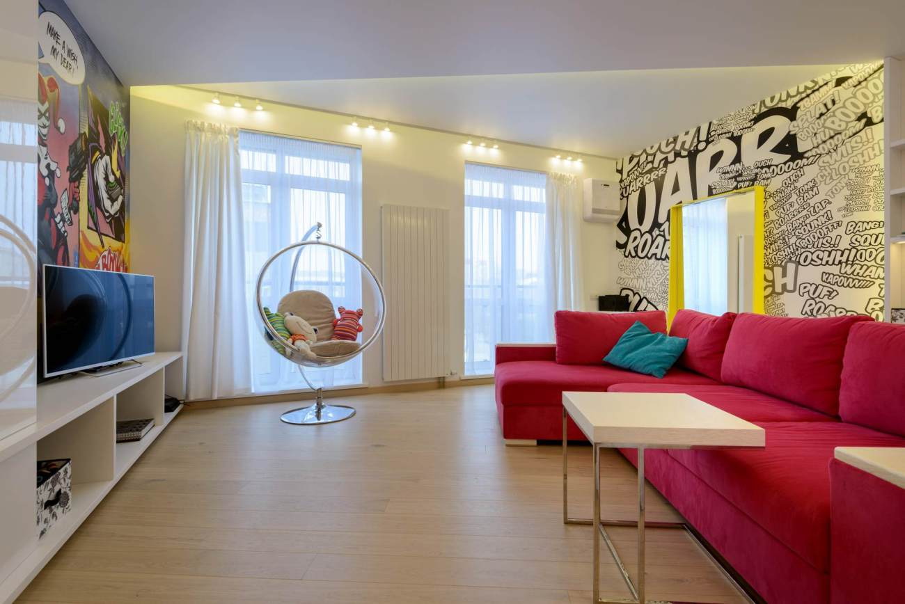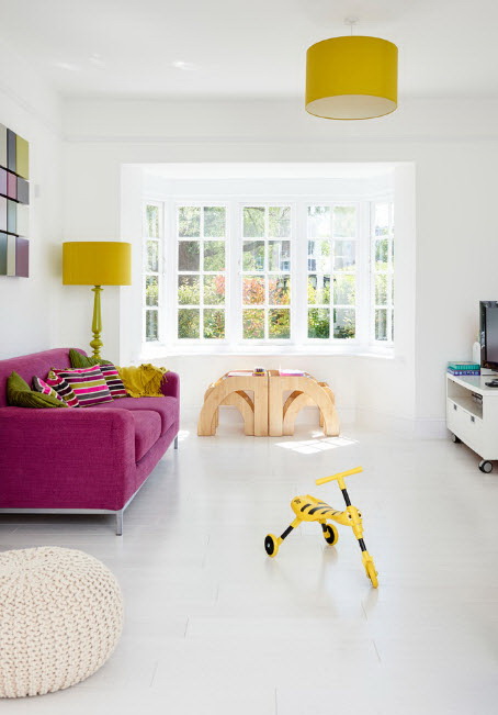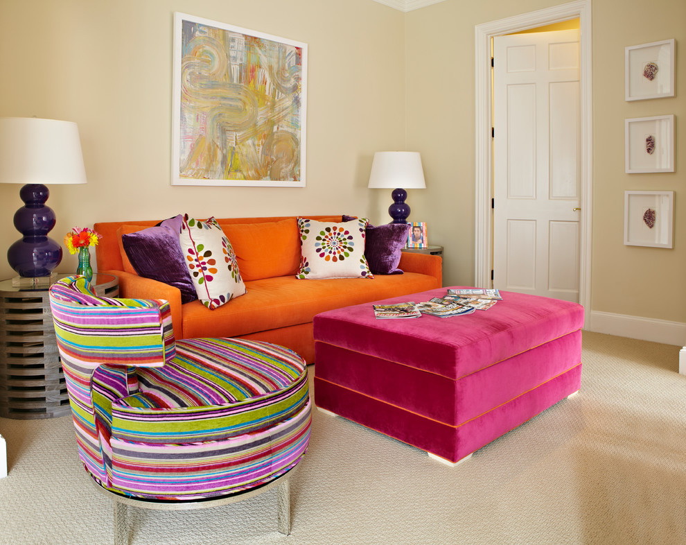 - Contraste. Contraste é um jogo que é tão legal de se jogar quando se decora. O principal é escolher cores realmente adequadas. Em uma sala com paredes brancas será desafiador e olhar grande sofá brilhante - vermelho, azul, roxo. Em uma sala onde as paredes são pintadas de laranja, o sofá roxo será perfeito. Para não confundir e não colocar no quarto móveis francamente inapropriados, vale a pena conferir com as tabelas de combinações.