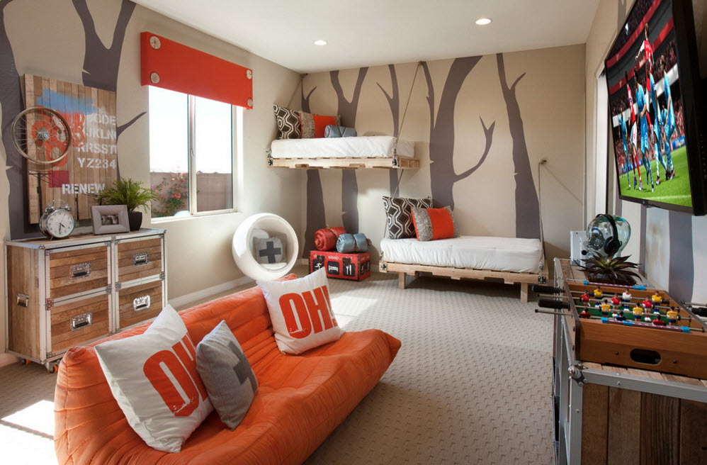 É uma boa idéia comprar uma criança na forma de um castelo na forma de um castelo, mas para um estudante mais jovem isso já é um estágio completo. É claro que os jogos ainda são importantes para ele, mas gradualmente a atenção está mudando para a comunicação, para os eventos escolares, para o conhecimento e para atividades mais adultas. Aqui o sofá mais brilhante com padrões não é mais adequado. Aqui você precisa se aproximar mais sutilmente.