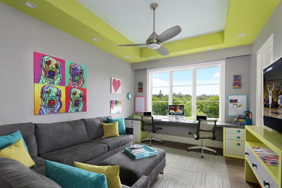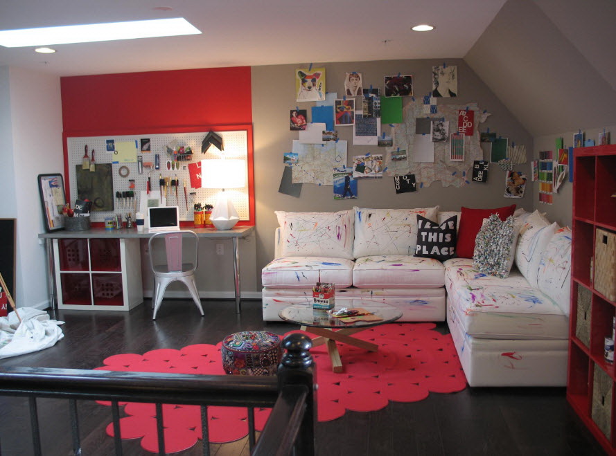 - Branco. A mais neutra das cores que poucos adolescentes se encaixam. As crianças não diferem na precisão, e será muito difícil remover as manchas de tinta ou suco de um sofá branco - é melhor escolher outra cor imediatamente.