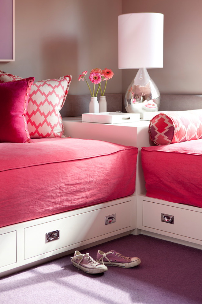 - Vermelho. Brilhante, cor forte, que pode fornecer um sofá, mas um pouco adequado para dormir. Mas você pode usar seus tons pálidos e delicados, que não estão associados nem com sangue, nem com amor, nem com outras coisas semelhantes.