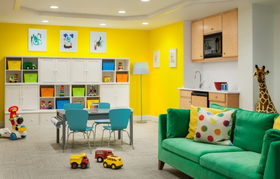 Caso contrário, a escolha da localização é completamente sua. Coloque o sofá ao lado da mesa para que a criança possa alcançá-lo a qualquer momento? Porque não? Coloque na parede à direita da porta e feche? Também é uma boa ideia.