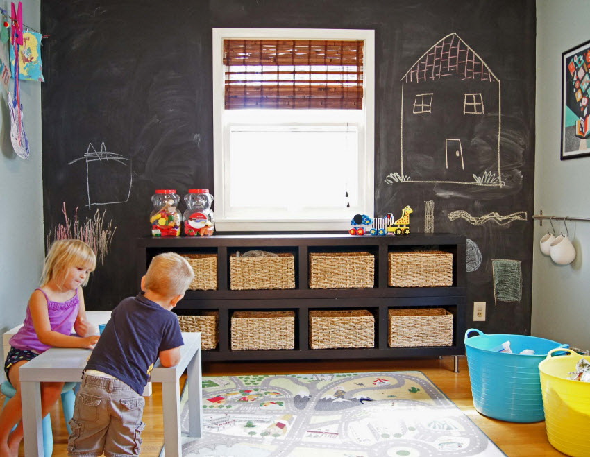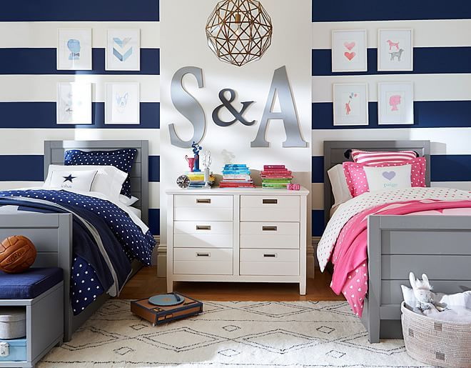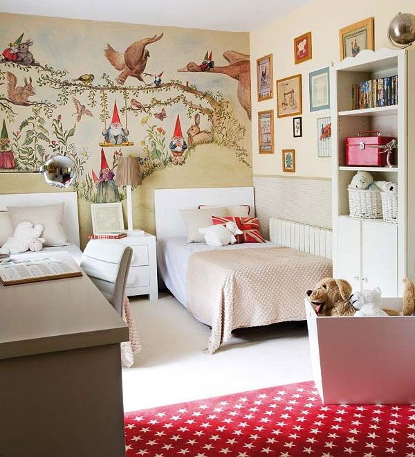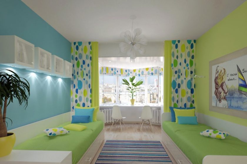 - pintar as paredes em cada metade do quarto do menino e da menina em cores diferentes, ou pokleit papel de parede;