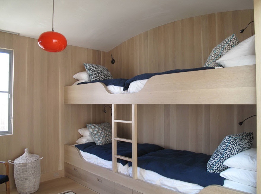 - cama de três andares, com armários de apoio embutidos para palangres. Por via de regra, a terceira cama em tais camas localiza-se normalmente perpendicularmente.