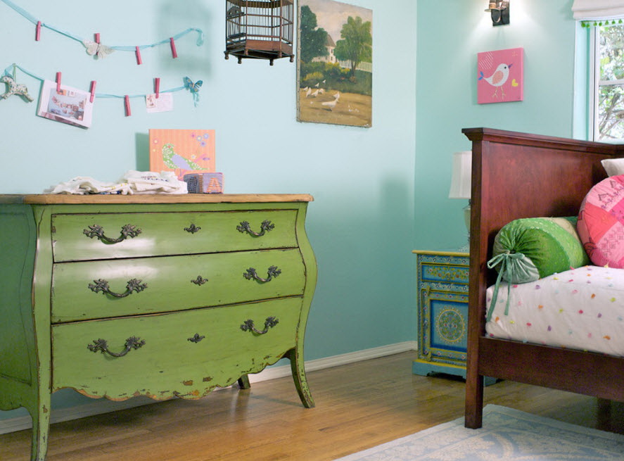Opção muito popular. Muitas vezes os meninos são creditados com azul, e as meninas são dadas de cor rosa. Uma boa solução se as crianças ainda são pequenas.