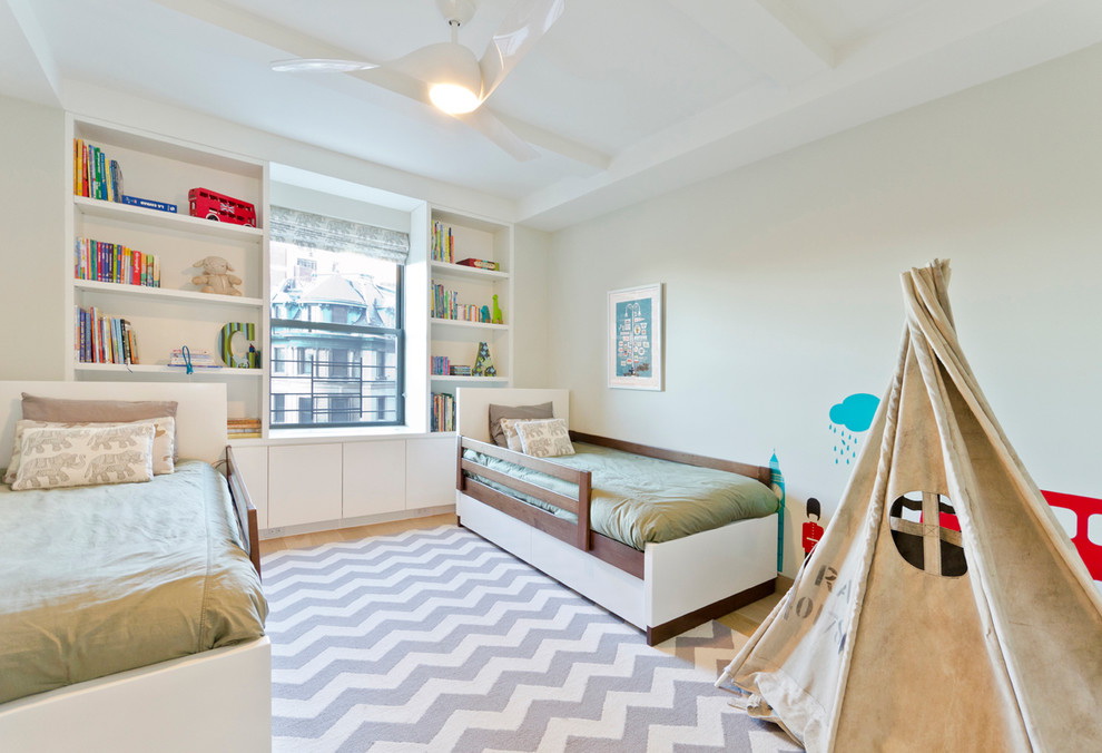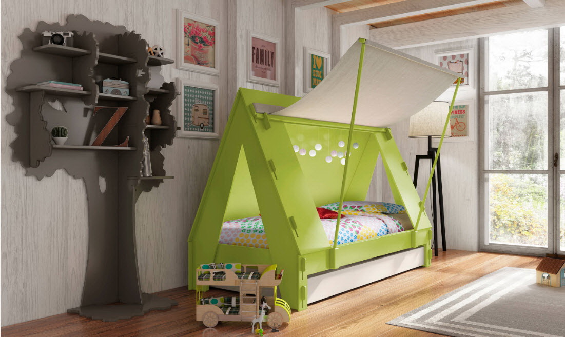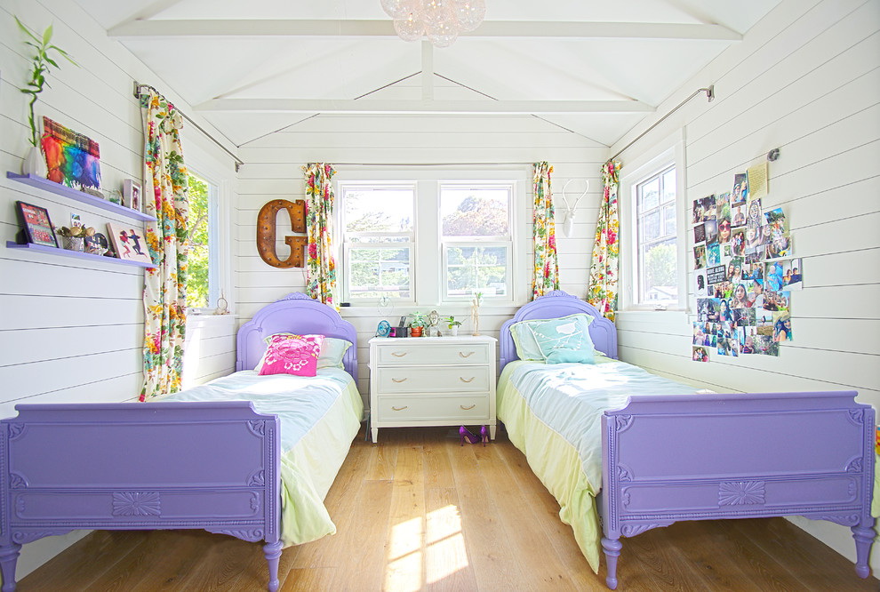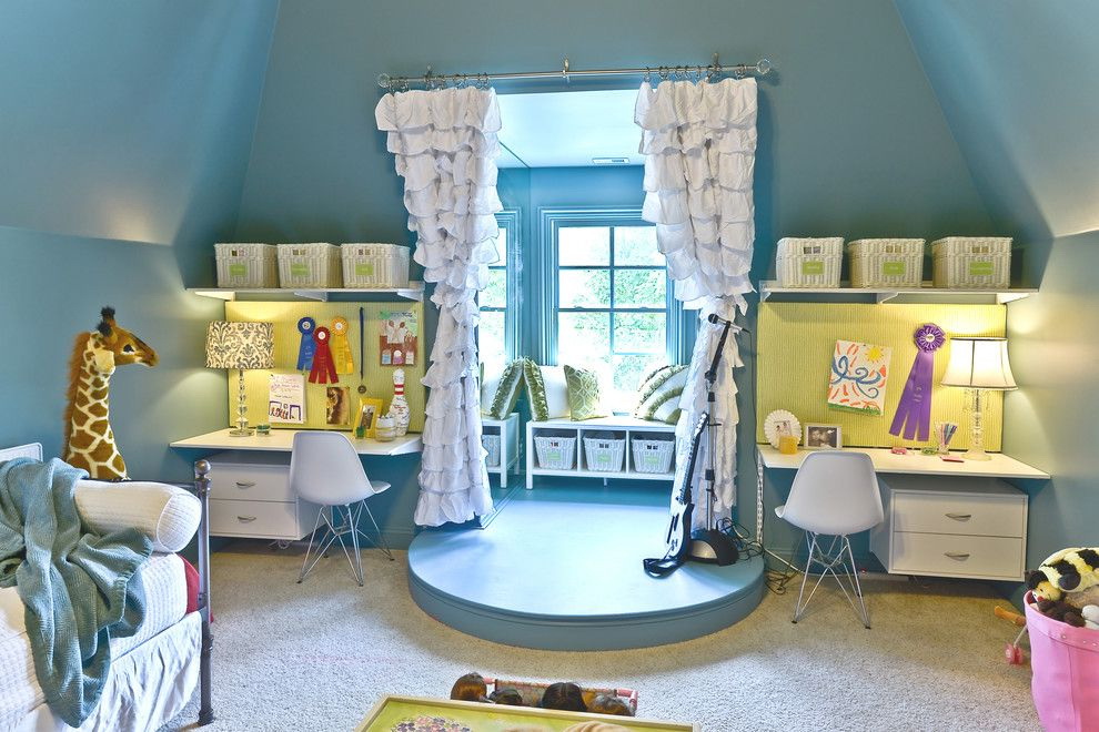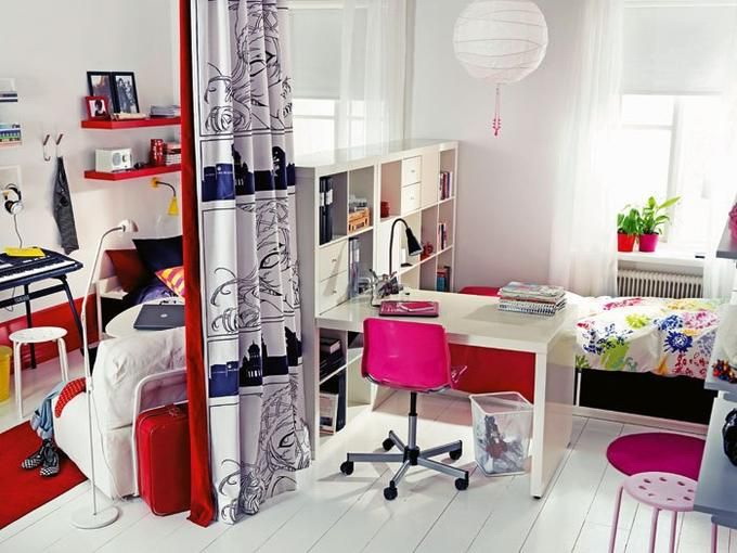 Recomenda-se também que as camas sejam colocadas à distância, especialmente para crianças de sexos diferentes. Nós usamos elementos já conhecidos para isolar a área de dormir: