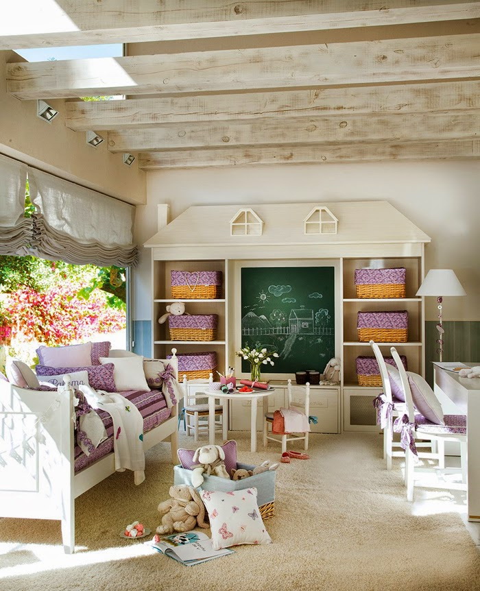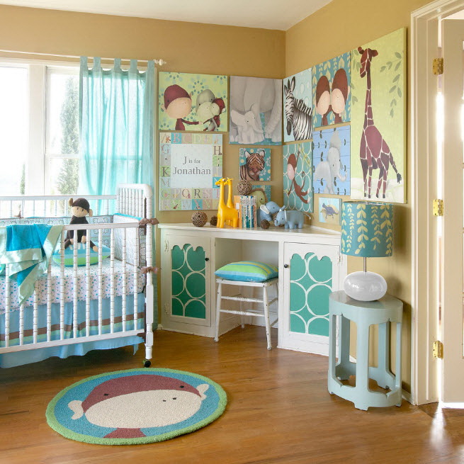 - Cores naturais frescas são adequadas para a área de trabalho, para o quarto - calmo e abafado. A área de jogo é decorada com cores brilhantes, ensolaradas e energizantes.