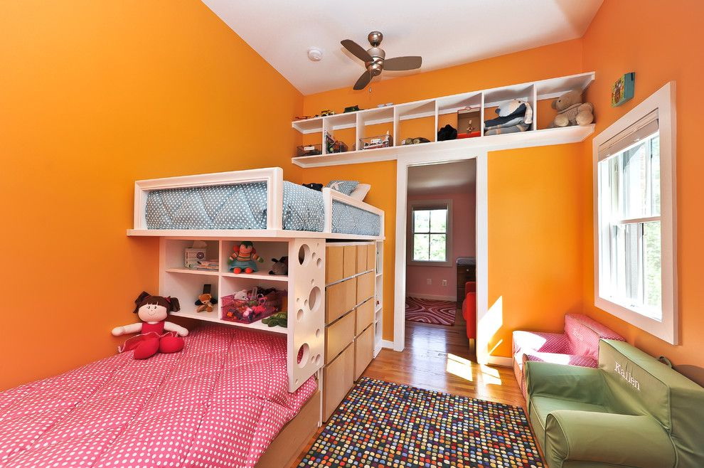 Nas condições de economia de espaço a mobília do quarto de crianças fazem exigências especiais.