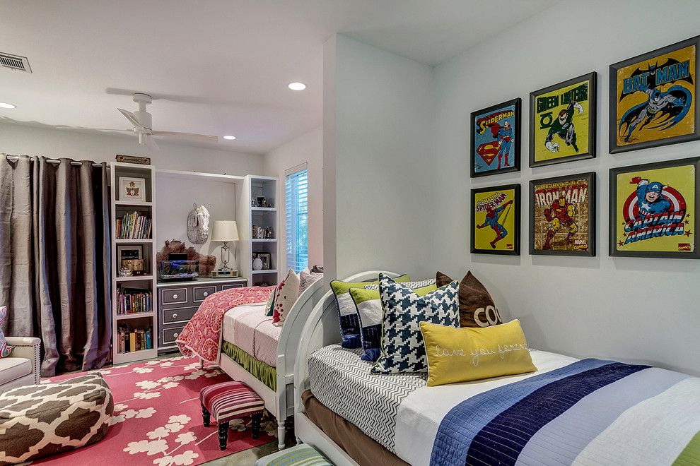 Dividir um quarto em zonas é uma solução vantajosa se o espaço for limitado. Uma sala grande é melhor dividida em zonas individuais para cada criança.