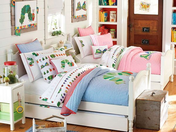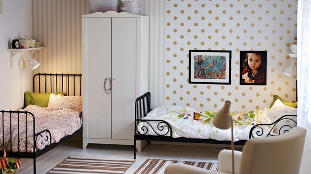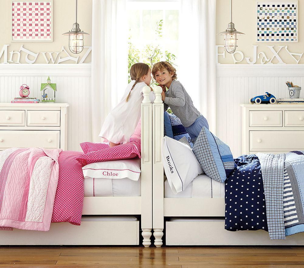 Camas podem ser colocadas juntas, dividindo-as com uma tela ou uma cômoda. Se a diferença na idade das crianças heterossexuais é significativa, se possível planejamos dormir à distância.