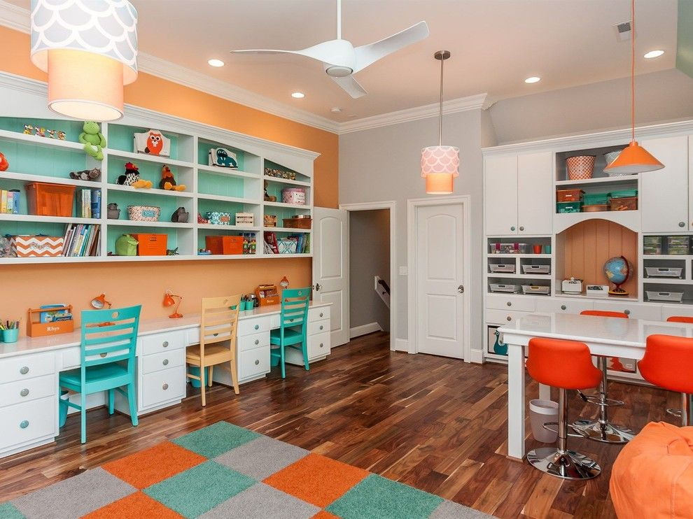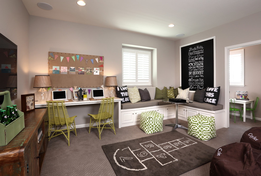 A área de jogo pode ser combinada com espaço para relaxamento.. Considere também a opção de excluir qualquer zona. Se todas as crianças estão em idade escolar, não há necessidade de uma grande área de jogo. Crianças pré-escolares não precisam de uma área de trabalho para as aulas.