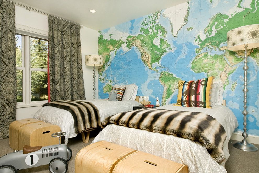 No berçário, escolha uma base mais densa para o papel de parede fotográfico, a imagem em papel fino rapidamente se tornará inutilizável. Pensamos com antecedência e discutimos a imagem com as crianças. Devido à idade e sexos diferentes, podem surgir divergências, é necessário escolher papéis de parede de fotos que as duas crianças vão gostar.