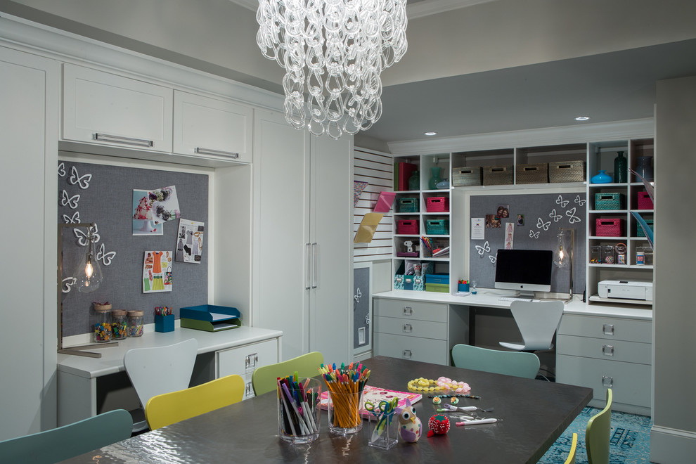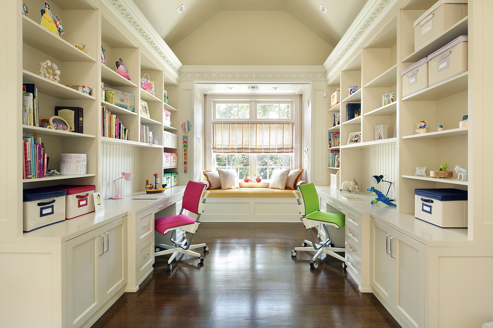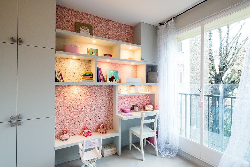 Escola - uma nova etapa para as crianças, que envolve a preparação da sala. Para estudo e aulas terá que fornecer uma área de trabalho e, idealmente - dois. Há uma necessidade de aumentar o espaço de armazenamento de livros, cadernos, uniformes escolares ou esportivos.