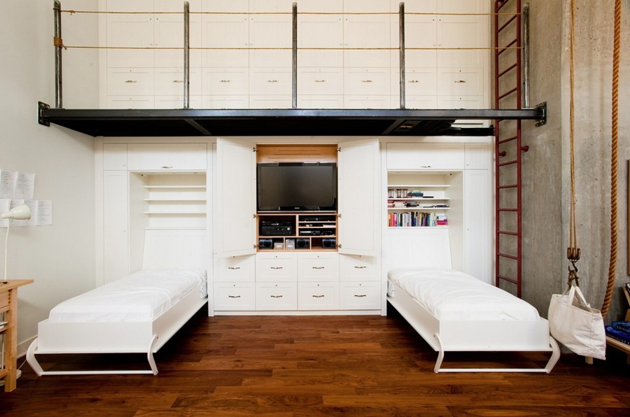 Modelos e sistemas modernos não dificultam que uma criança em idade escolar faça sua própria cama. Assim, as crianças recebem seu próprio local para dormir, que quando dobrado não ocupa uma área significativa da sala.