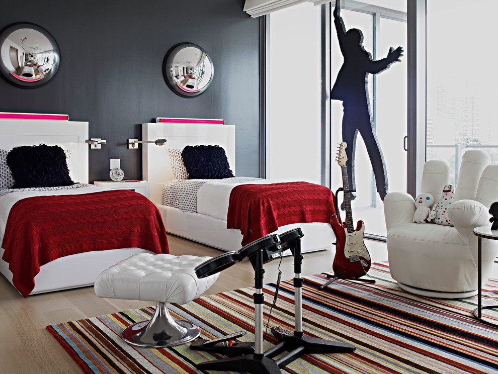 Um quarto bem iluminado sempre parece mais espaçoso visualmente, e as crianças precisam de luz suficiente para não prejudicar sua saúde ou prejudicar sua visão. Para meninas e meninos, você pode escolher lâmpadas diferentes de forma interessante e de cores diferentes.
