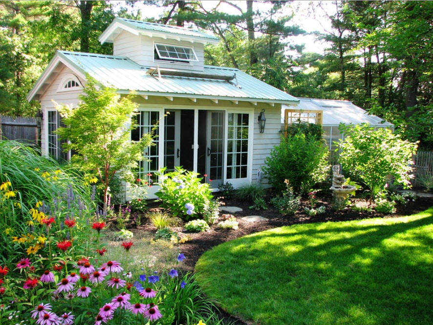 Japonês mencionado por último por um bom motivo. No seu exemplo, quero mostrar como você pode estilizar um jardim na casa de campo mais comum.