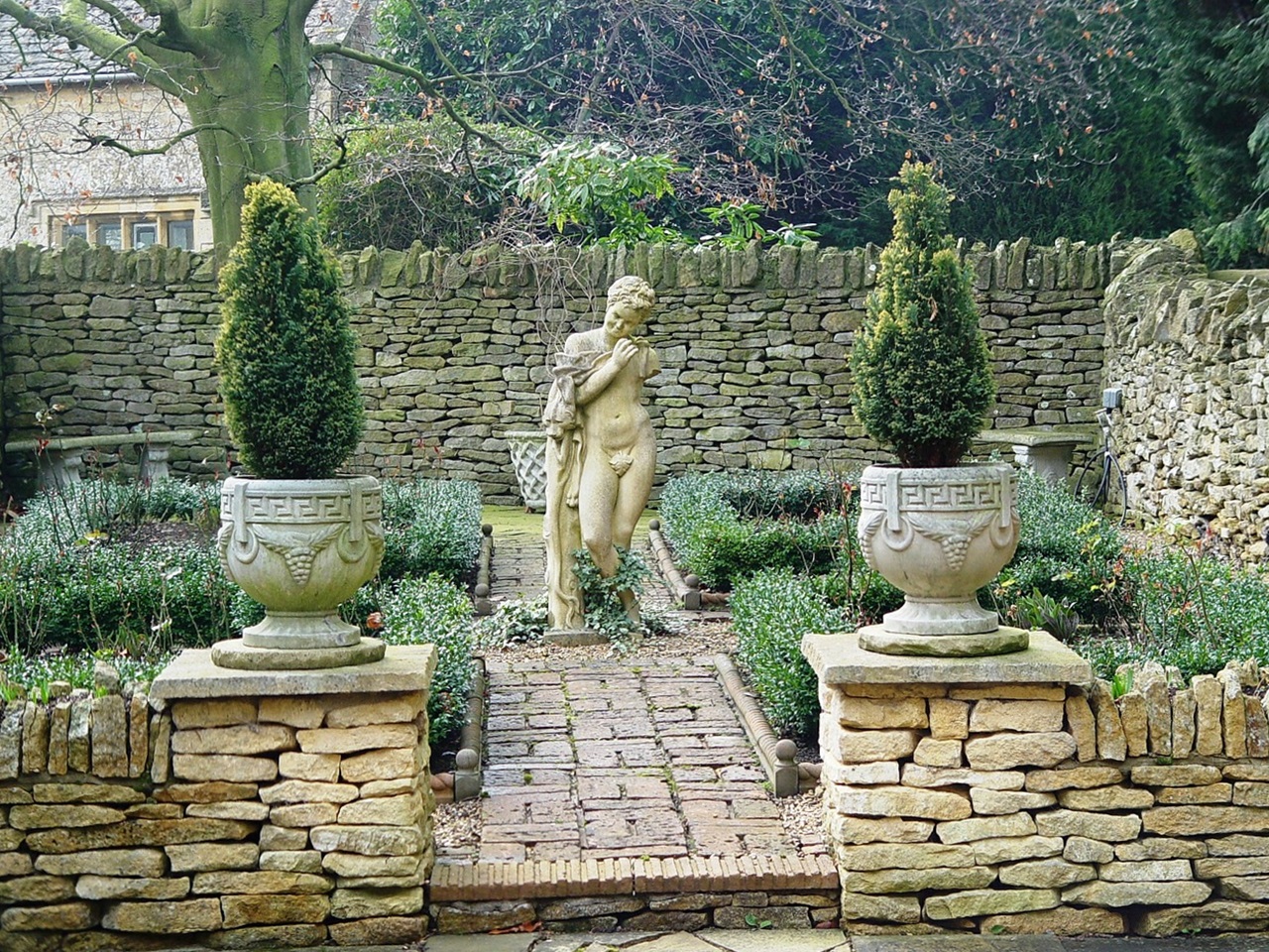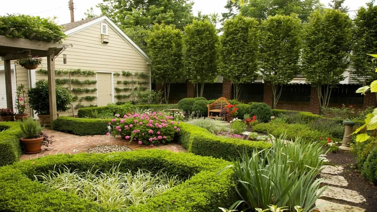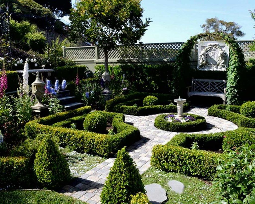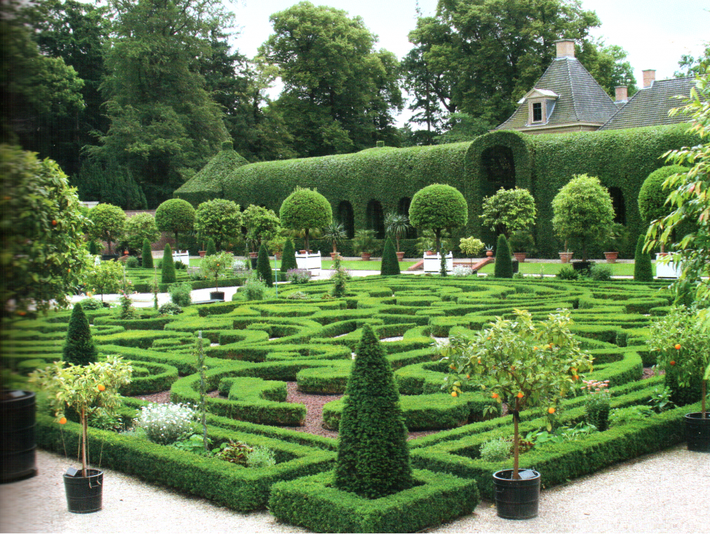 - a predominância de plantas que podem ser cortadas, forma de longa duração (usado para criar figuras topiarnyh).