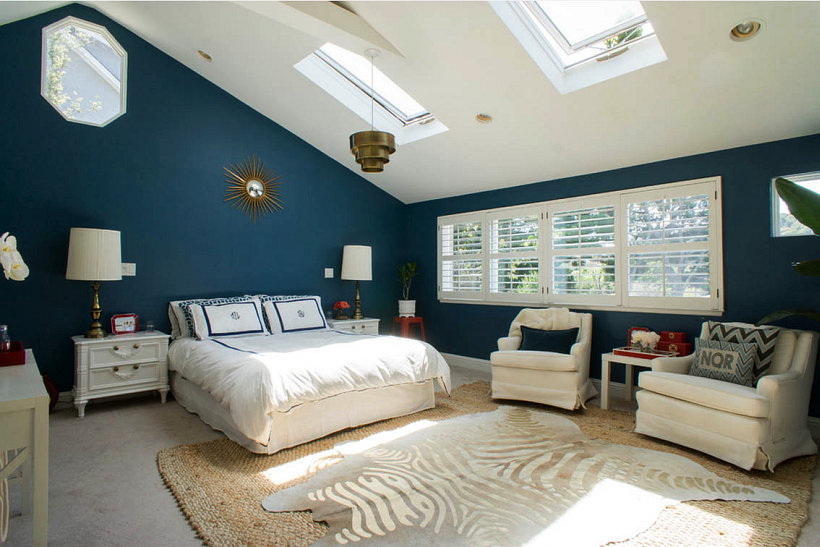 O interior do sótão depende do objetivo do quarto, muitas vezes o gesso leve se usa, a mancha incolor de raios de madeira. Se a casa é construída de blocos, as encostas do telhado são mascaradas com a ajuda de painéis de madeira e gesso cartonado. A abundância de iluminação natural permite que você use tons escuros, decoração maciça e um mínimo de iluminação adicional.