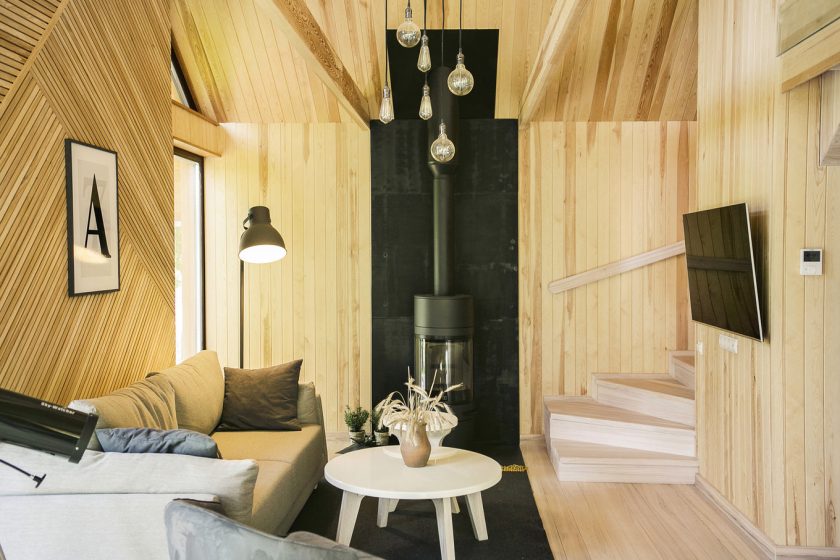 A escolha do estilo na sala depende dos materiais selecionados. Por exemplo, madeira macia (bétula, amieiro) tem um tom de mel e, além de ornamentos florais, cria um interior nos estilos retrô e provençal. Materiais mais leves e madeira densa (carvalho, bordo, acácia) criam uma sala no estilo inglês, você deve instalar um ponto de fontes de luz.