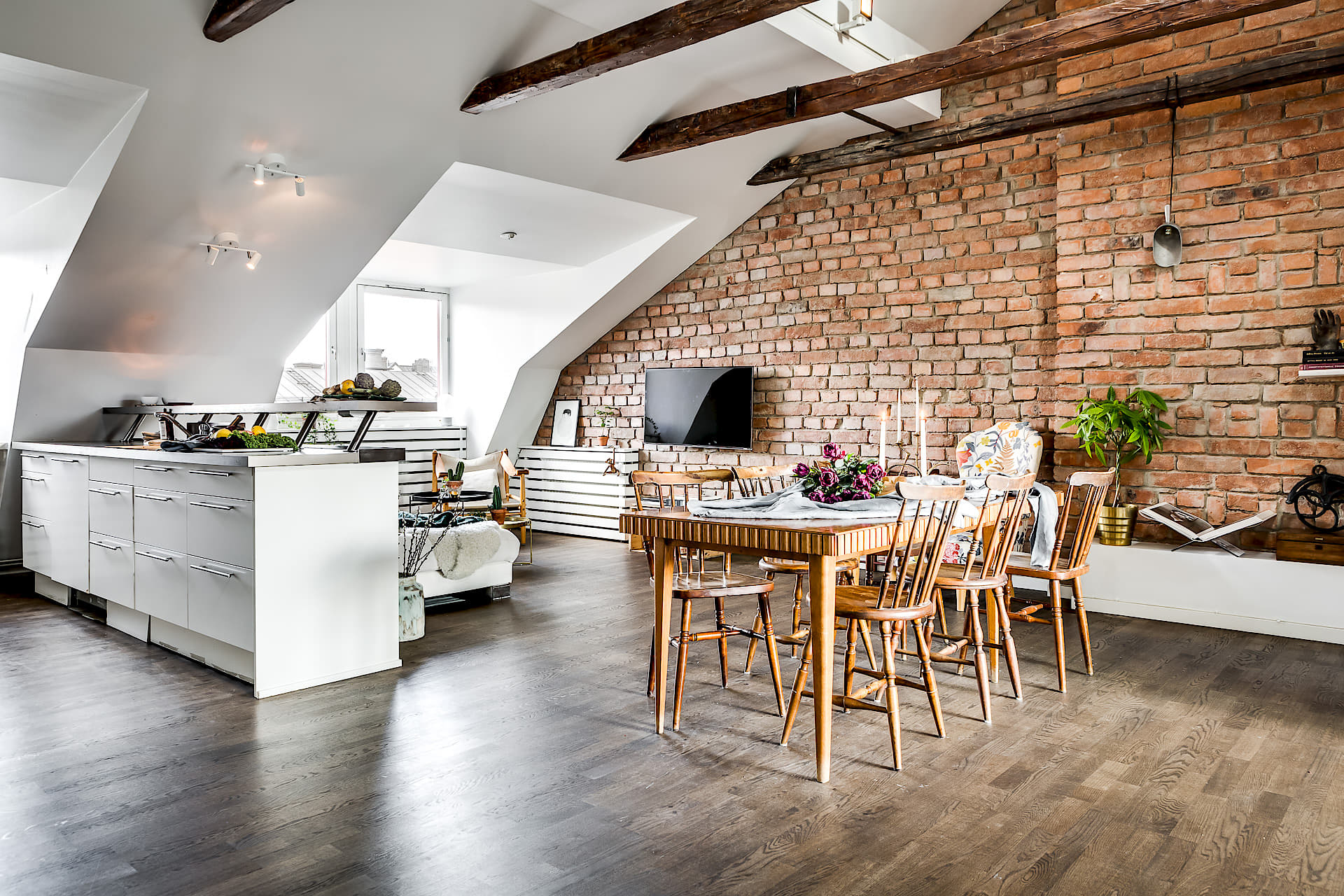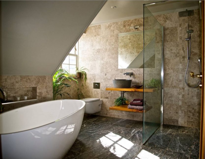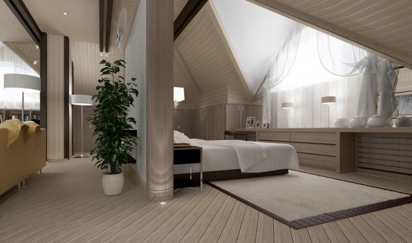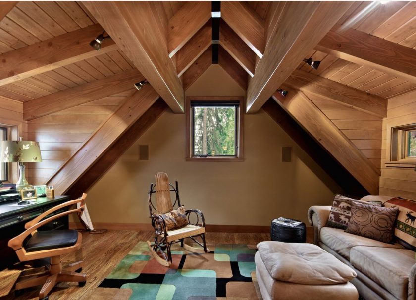 A maioria dos proprietários de edifícios de vários andares e edifícios de um só andar com um sótão tendem a usar o quarto como uma sala de pleno direito. O espaço interior do sótão depende do interior em toda a casa. Na maioria das vezes, o acabamento é feito em cores neutras, usando materiais naturais: