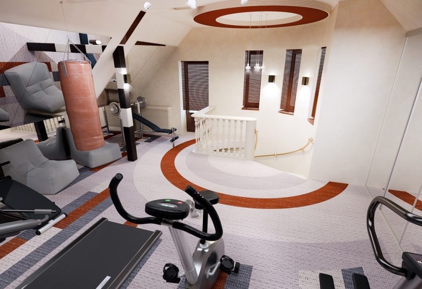 O ginásio no sótão envolve o armazenamento de estoque, aulas em diferentes momentos do dia. É necessário fornecer uma temperatura confortável, recomenda-se fornecer o quarto com controle de temperatura e isolamento acústico adicional.