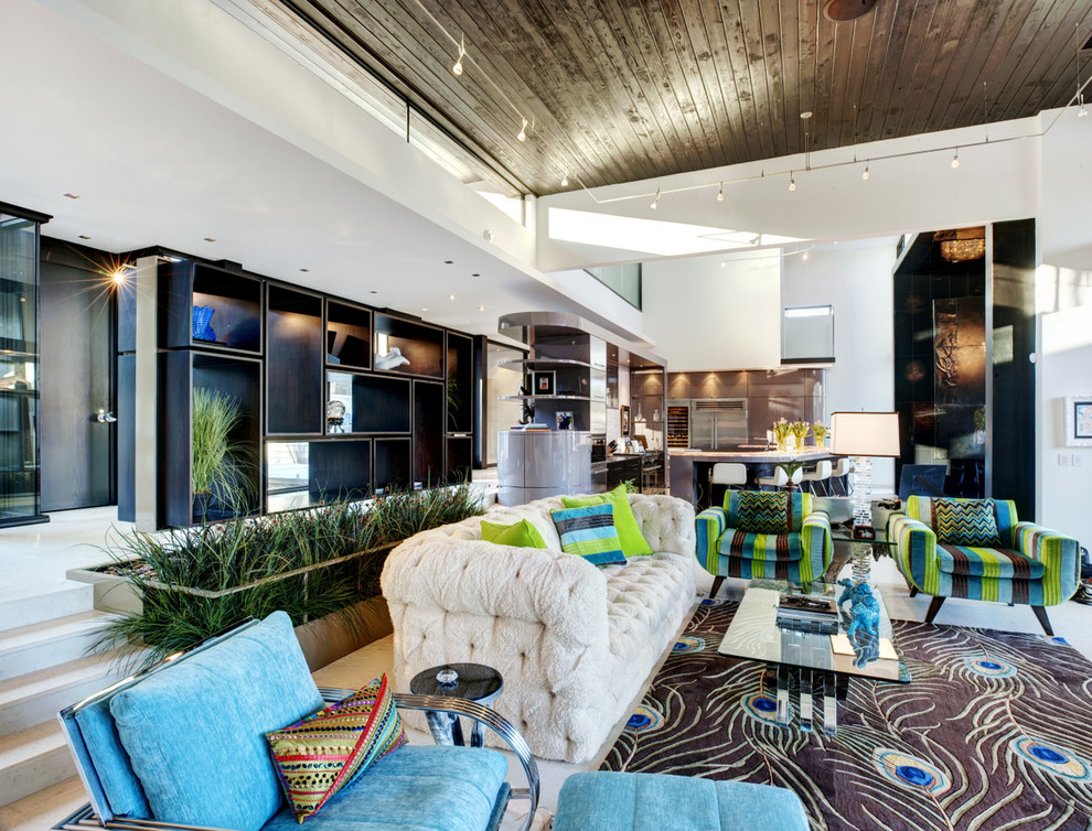 Móveis e decoração do interior boêmio impressionam com a variedade. Móveis de estilo clássico aqui podem coexistir com cadeiras de acrílico e busto de Pushkin com uma máscara africana.