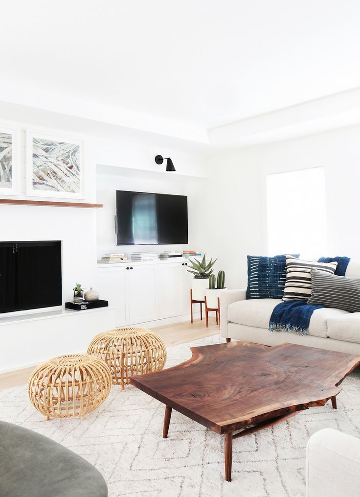 - Complemente o interior com elementos naturais (pode ser vasos de plantas, galhos secos, cestas de vime e até penas).