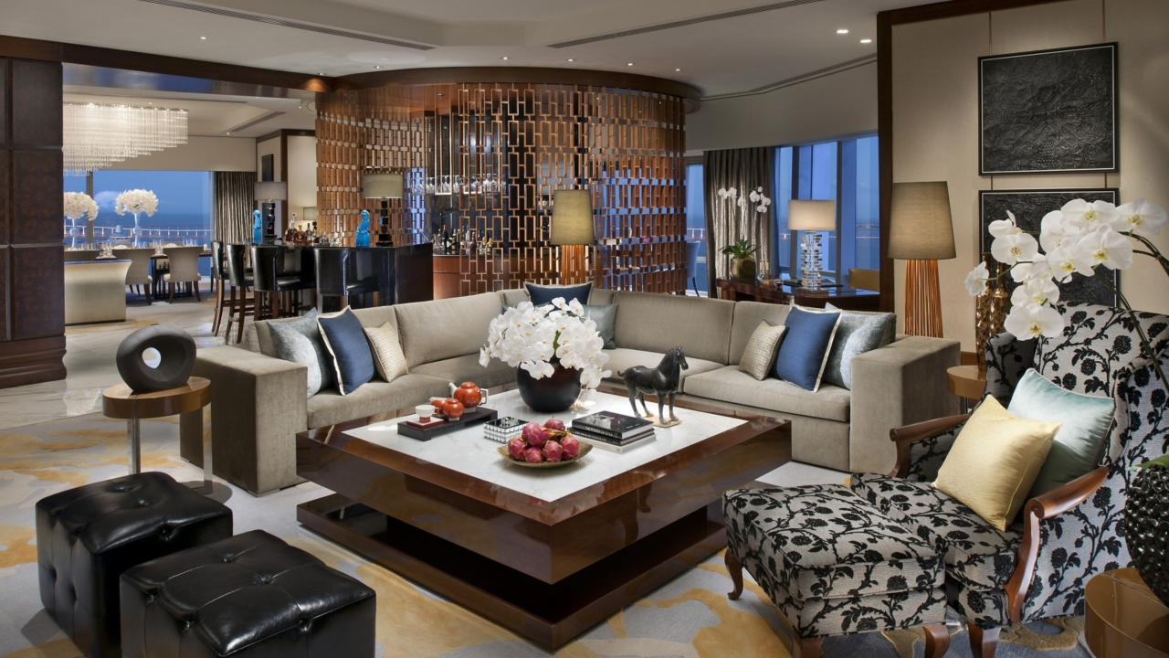 Uma sala de estar sem móveis estofados é como um quarto sem cama. As últimas ofertas dos designers encantam a funcionalidade. Um sofá equipado em torno do perímetro com prateleiras dobráveis ou um mini-bar é útil em qualquer sala de estar.