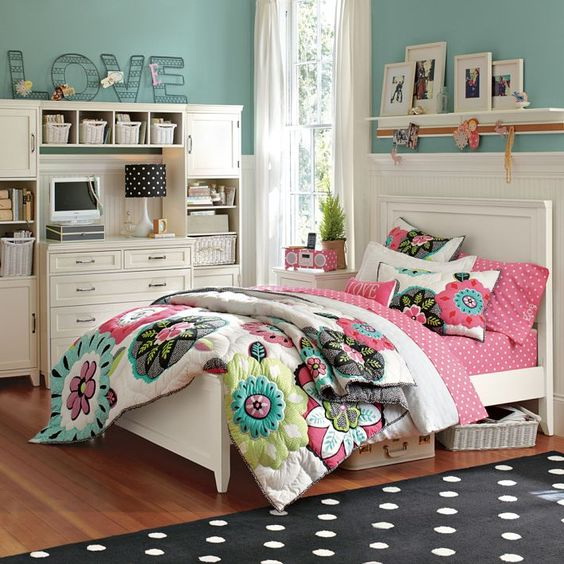 Neste caso, você precisará de um fone de ouvido que lhe permita atender a todas as necessidades da garota, incluindo peças de mobília para: sono, lazer, trabalhos escolares.