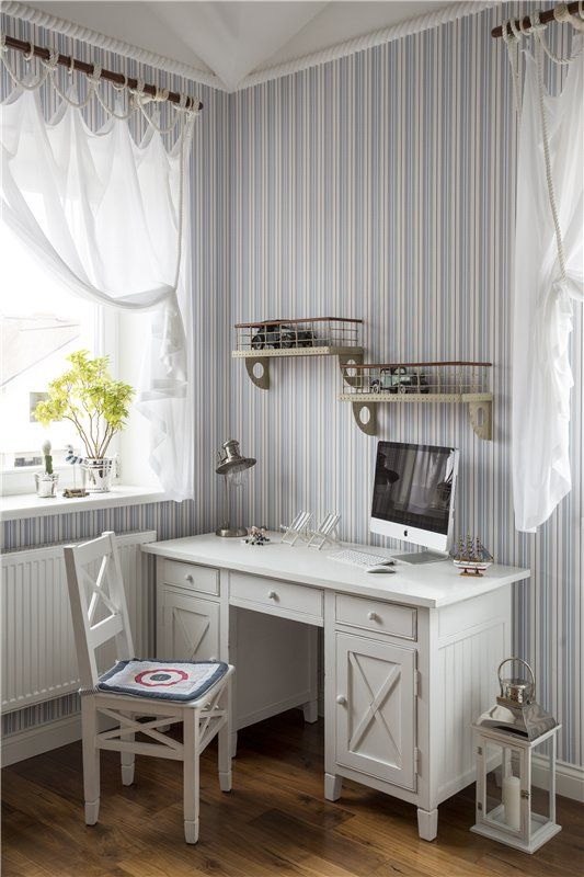 Azul combina bem com branco e bege. E ele é "amigável" com um padrão listrado e xadrez, estampas florais e tecidos naturais.