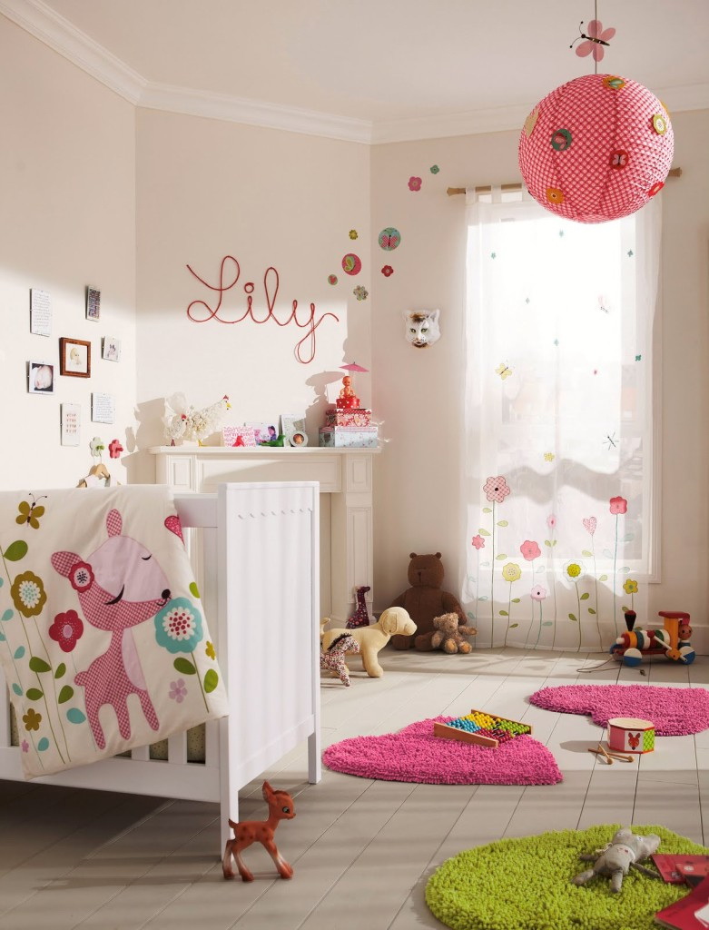Além da capacidade de fazer ajustes à situação, o interior do berçário para uma menina deve corresponder aos seus gostos e desejos.