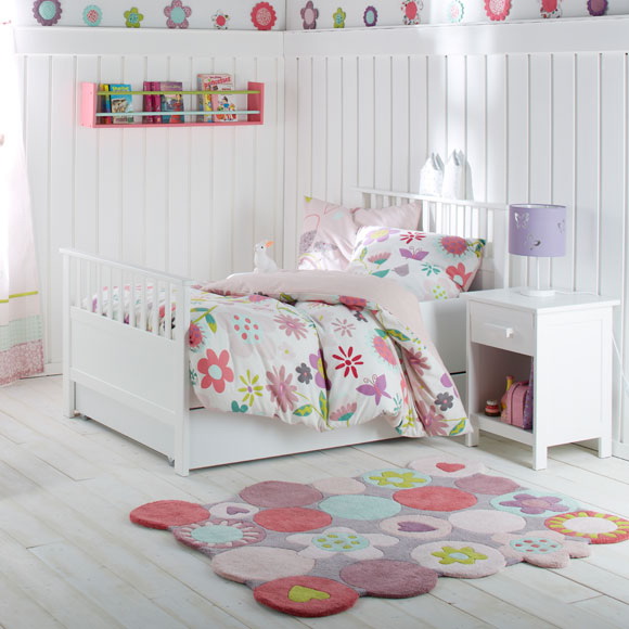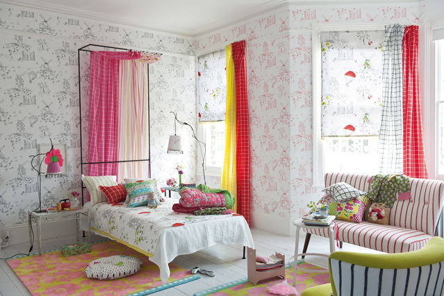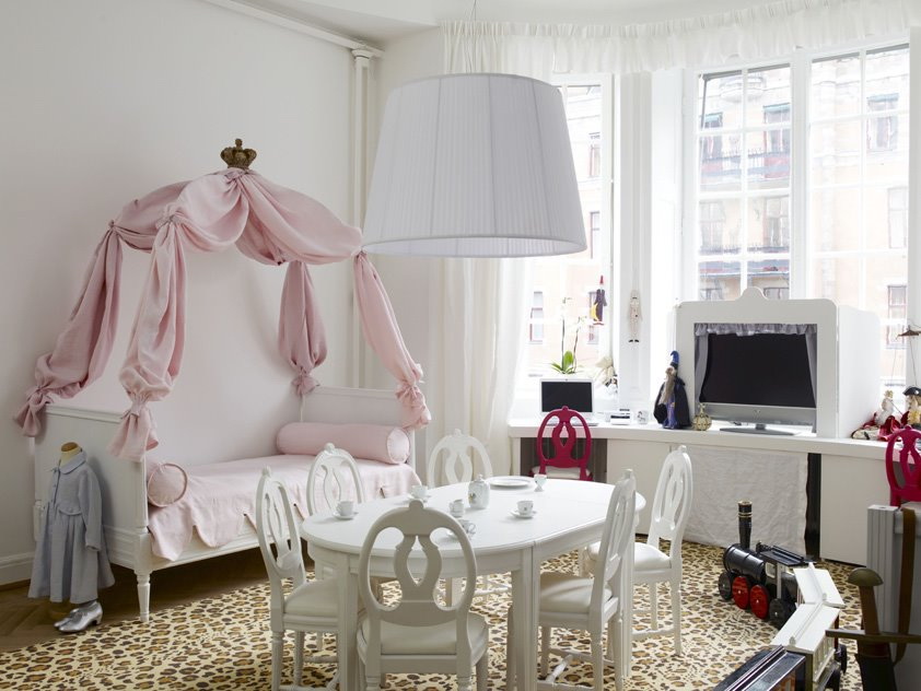 Todas as cores do campo, flores do jardim podem encontrar o seu lugar no interior da sala da menina que ama a natureza, contos de fadas, seus brinquedos.