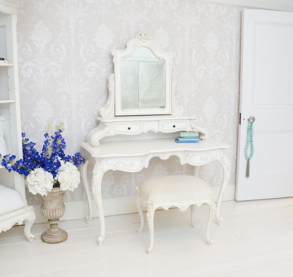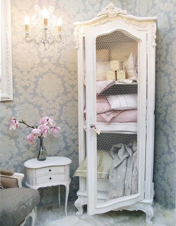Para o arranjo de móveis usados luz da matriz. Mobília do quarto em tais salas é muitas vezes pintada de cor clara branca ou silenciado. É feito de bétula maciça, cinza, outra madeira. Ele tem pernas esculpidas. A cabeceira de madeira, o pé da cama é decorado com painéis de madeira ou painéis.