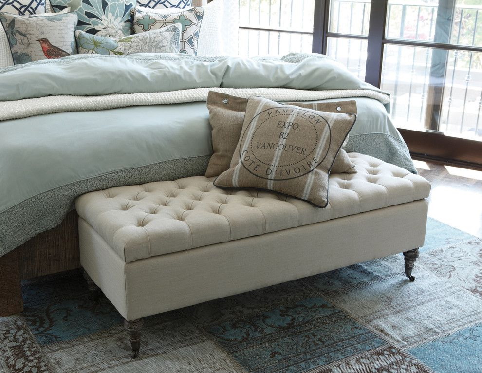 Notável para o estilo de Provence é têxteis feitos de fibras naturais. Travesseiros de vários tamanhos são dispostos na cama (de 2 a 5 peças) com fronhas feitas de renda fina, chintz com um pequeno ornamento floral. A colcha é feita de retalhos ou tecido natural com um padrão floral espesso.